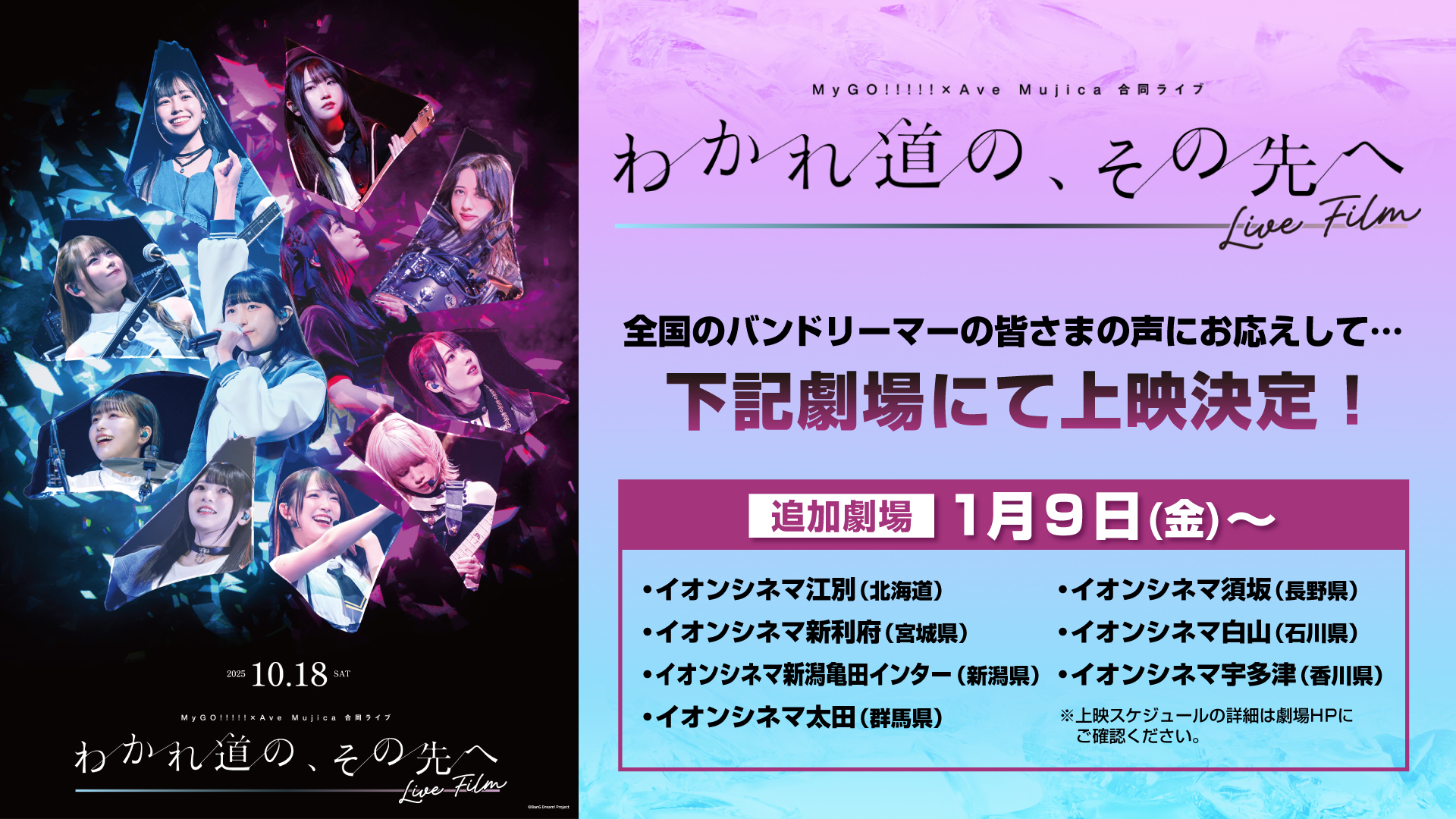 MyGO!!!!!×Ave Mujica 合同ライブ「わかれ道の、その先へ」 LIVE FILM 追加劇場での上映決定