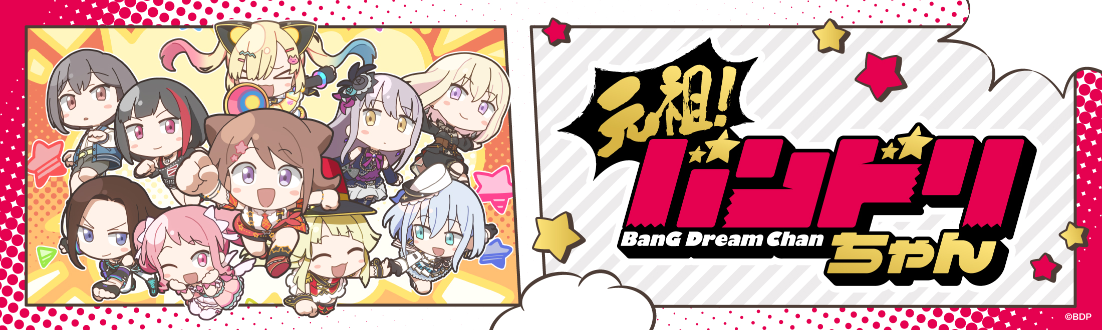 ANIME バンドリ! ゆめ∞みた 元祖!バンドリちゃん BanG Dream! Ave Mujica BanG Dream! It's MyGO!!!!! BanG Dream! ガルパ☆ピコ ふぃーばー! BanG Dream! ガルパ☆ピコ ~大盛り~ BanG Dream! 3rd Season BanG Dream! 2nd Season BanG Dream! ガルパ☆ピコ BanG Dream!(バンドリ!) MOVIE 劇場版「BanG Dream! It's MyGO!!!!! 後編 : うたう、僕らになれるうた & FILM LIVE」 劇場版「BanG Dream! It's MyGO!!!!! 前編 : 春の陽だまり、迷い猫」 BanG Dream! FILM LIVE 2nd Stage 劇場版「BanG Dream! Episode of Roselia Ⅰ : 約束 / Ⅱ : Song I am.」 劇場版「BanG Dream! ぽっぴん'どりーむ!」 BanG Dream! FILM LIVE