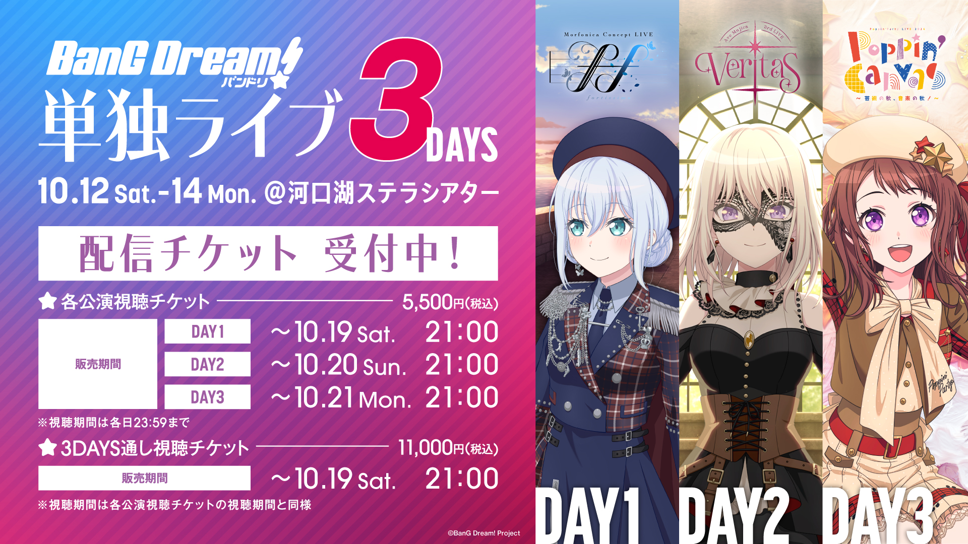 2024年10月、Morfonica・Ave Mujica・Poppin'Partyの単独ライブ3DAYSが、河口湖ステラシアターにて開催!