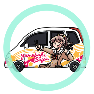 ・グッズのうち、ステッカーを自家用自動車に貼り付けて所謂「痛車」を制作すること。