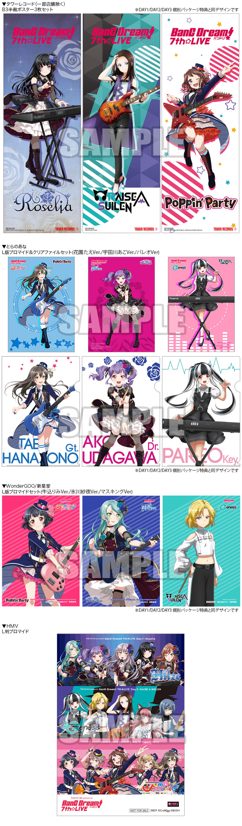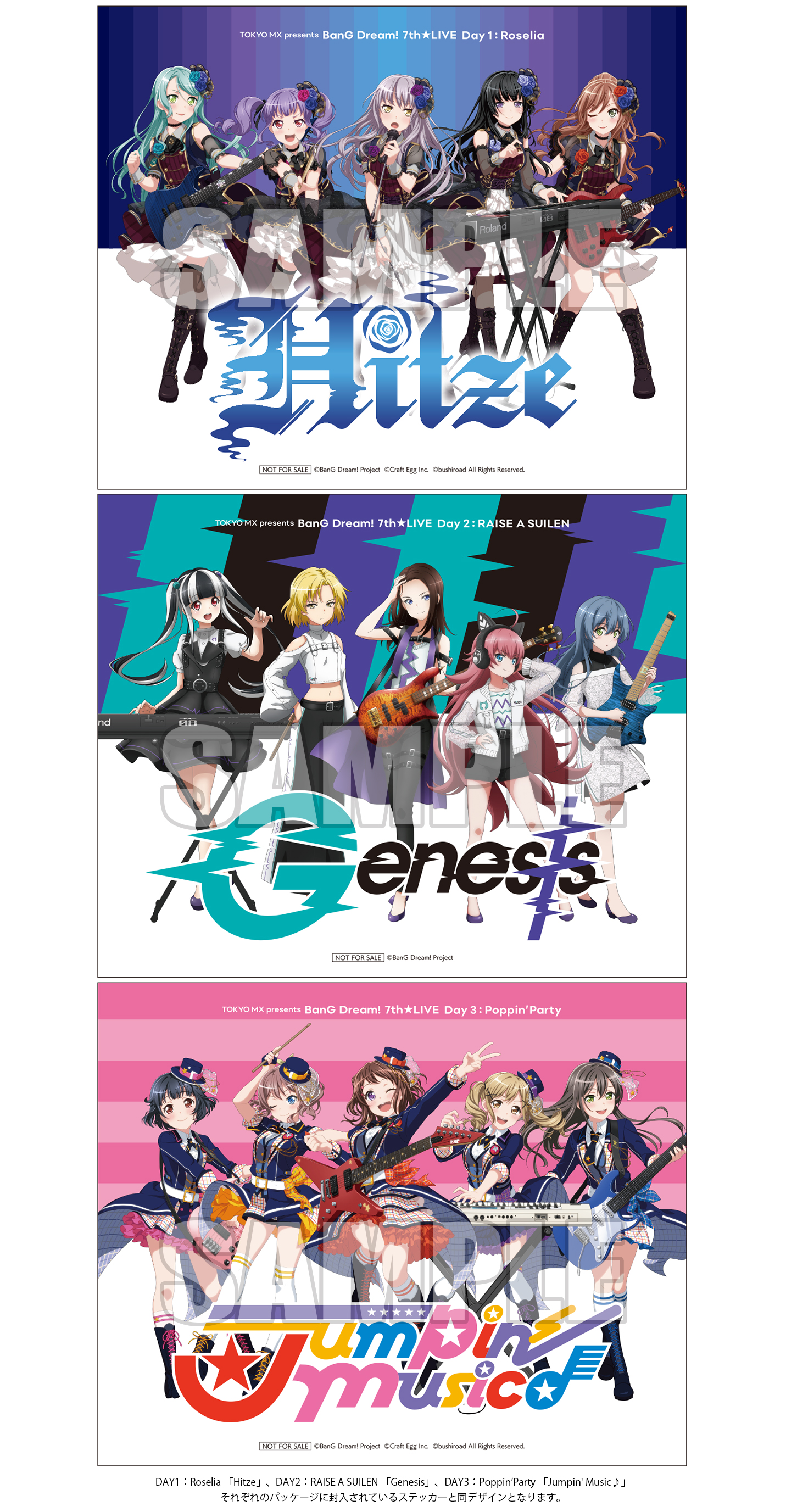 DAY1 : Roselia 「Hitze」、DAY2 : RAISE A SUILEN 「Genesis」、DAY3 : Poppin'Party 「Jumpin' Music♪」それぞれのパッケージも発売♪