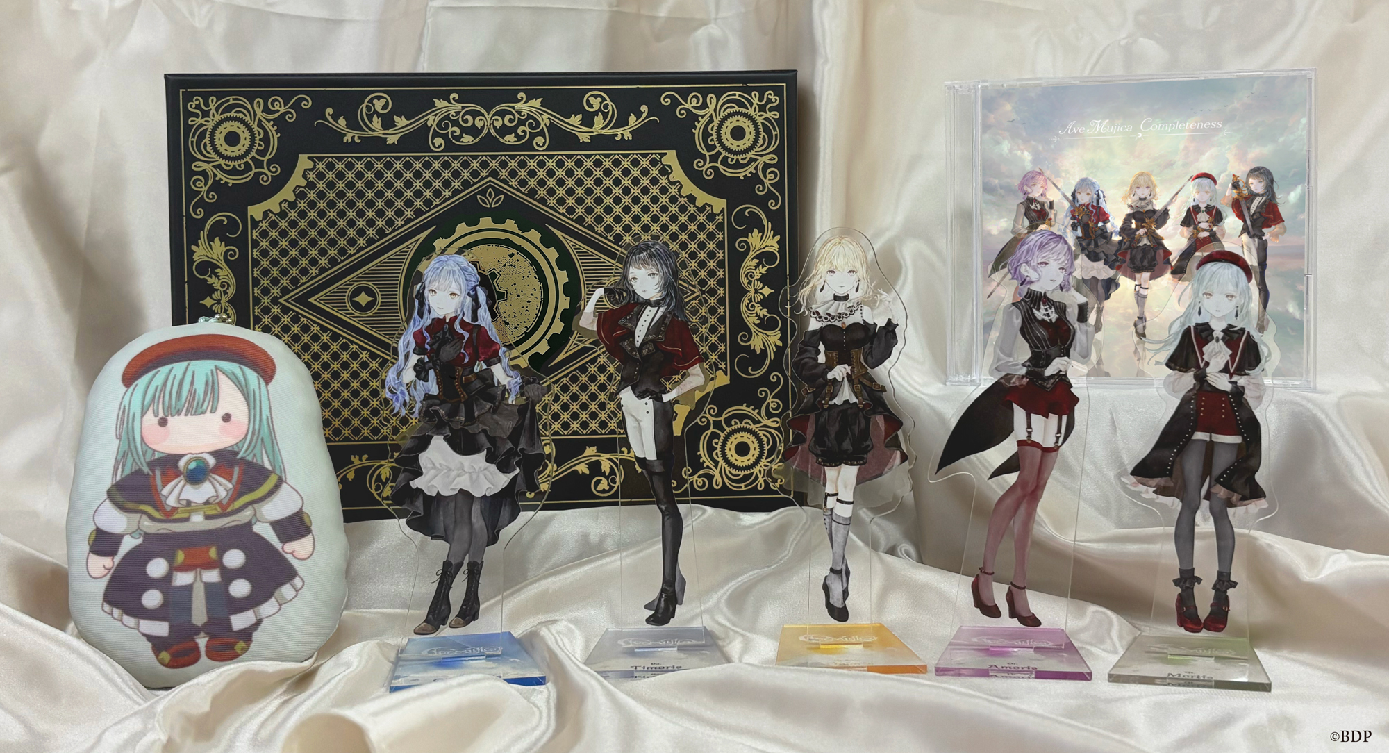 5,000枚限定生産特装盤は豪華BOX仕様となっており、ジャケットイラストを使用した特製アクリルスタンド(5種セット)に加え、アニメ作中に登場するモーティスのクッションストラップも付属している。