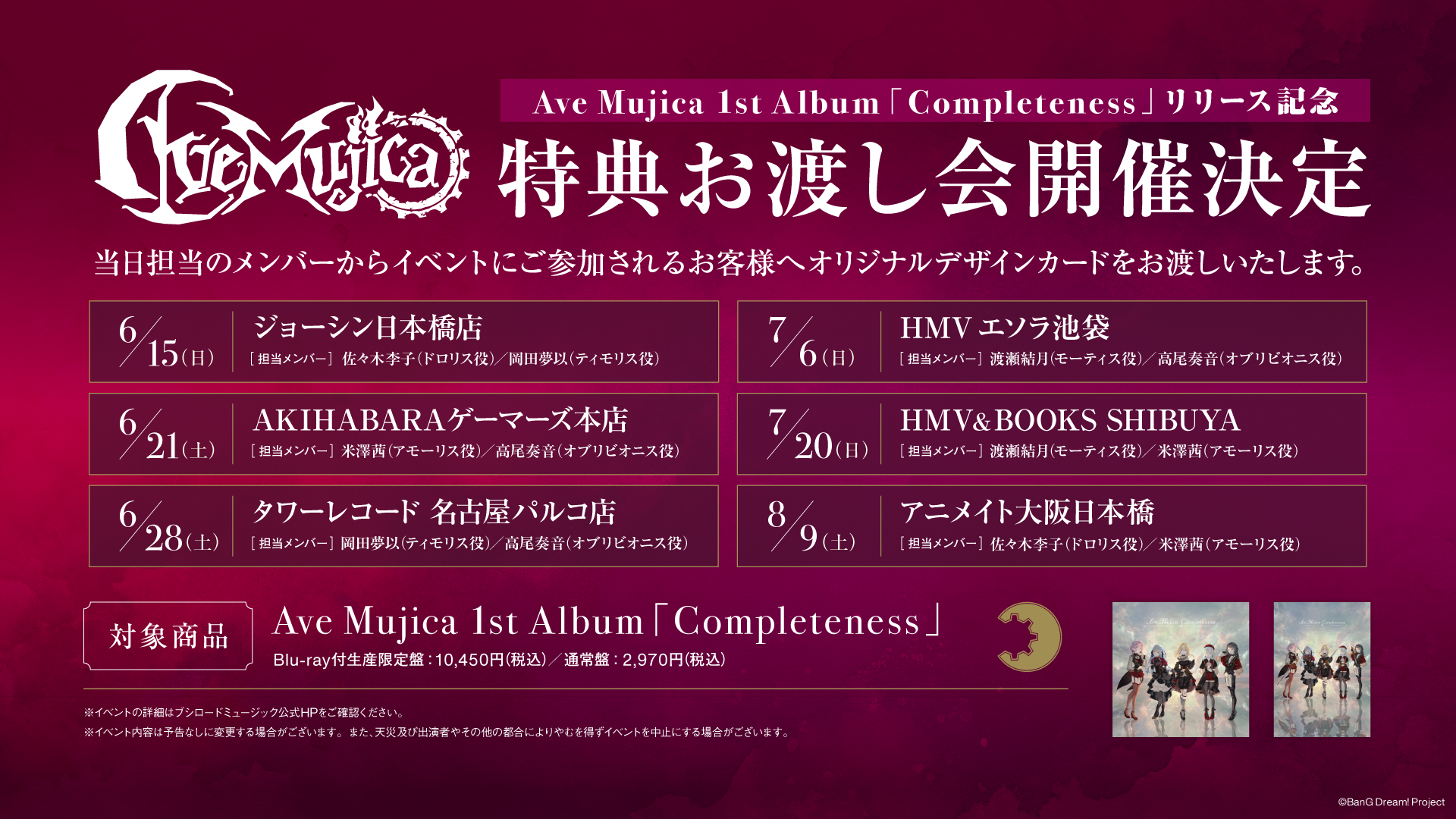Ave Mujicaメンバーによる特典お渡し会が決定しました。