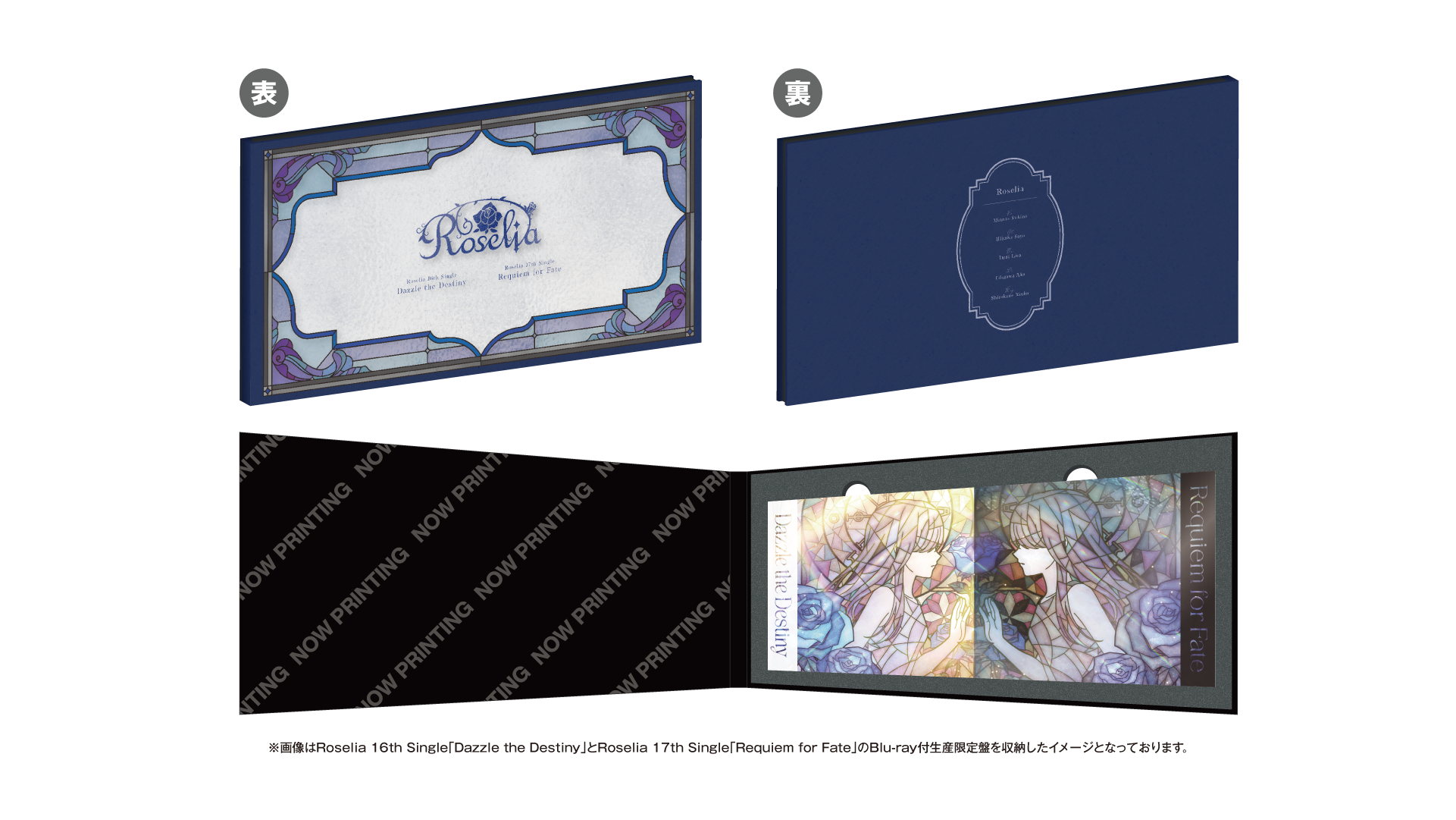Roselia 16th Single「Dazzle the Destiny」とRoselia 17th Single「Requiem for Fate」のそれぞれBlu-ray付生産限定盤(通常盤は対象外)を「特典対象店舗・ECショップ」にて購入されたお客様を対象に先着で、2枚のCDをケースに入れたまま並べて収納できる「オリジナル収納ケース」(全1種)をプレゼントいたします。