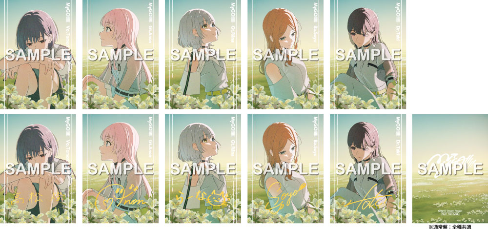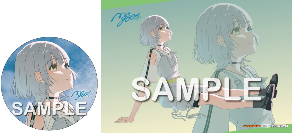 通常盤:缶バッジ(56㎜/通常盤 楽奈ver.)+L判ブロマイド(通常盤 楽奈ver.)