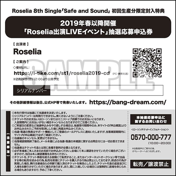 ・Roselia 単独ライブ「Flamme」/「Wasser」抽選応募申込券