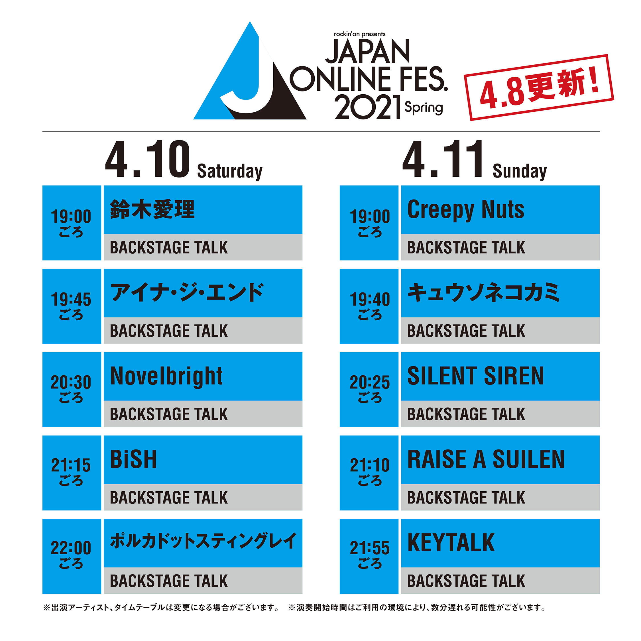 JAPAN ONLINE FESTIVAL 2021 Spring公式サイト内視聴用ページにて配信