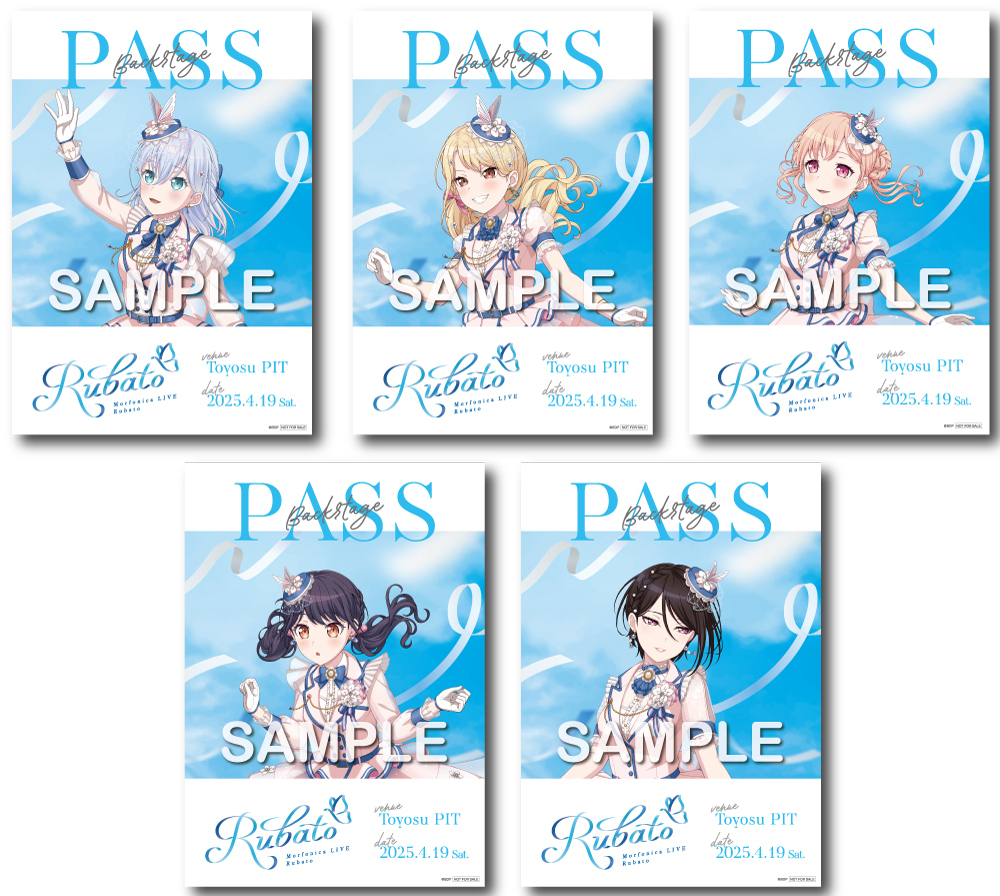 BanG Dream!関連商品(CD,Blu-ray商品)を会場にて2,000円(税込)ご購入ごとに「Morfonica LIVE『Rubato』バックステージパス風ステッカー(全5種)」をランダムで1枚プレゼントいたします。