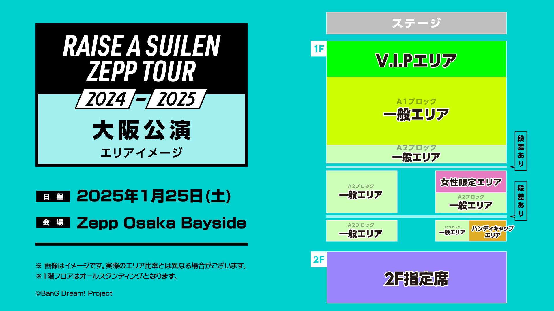 ※2F後方立ち見エリアは、ステージおよび一部の演出が見えにくい場合がございます。予めご了承下さい。