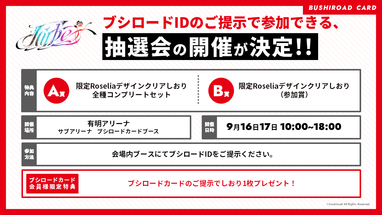 こちらはブシロード オンラインストアにて9月16日(土)21時より予約受付開始します。(※Roselia「Farbe」会場での販売はございません。)