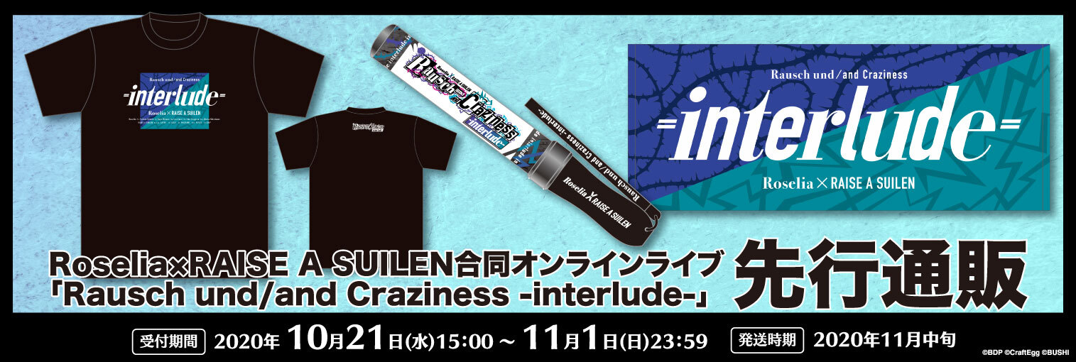 Roselia×RAISE A SUILEN合同オンラインライブ「Rausch und/and Craziness -interlude-」のグッズを期間限定通販いたします。