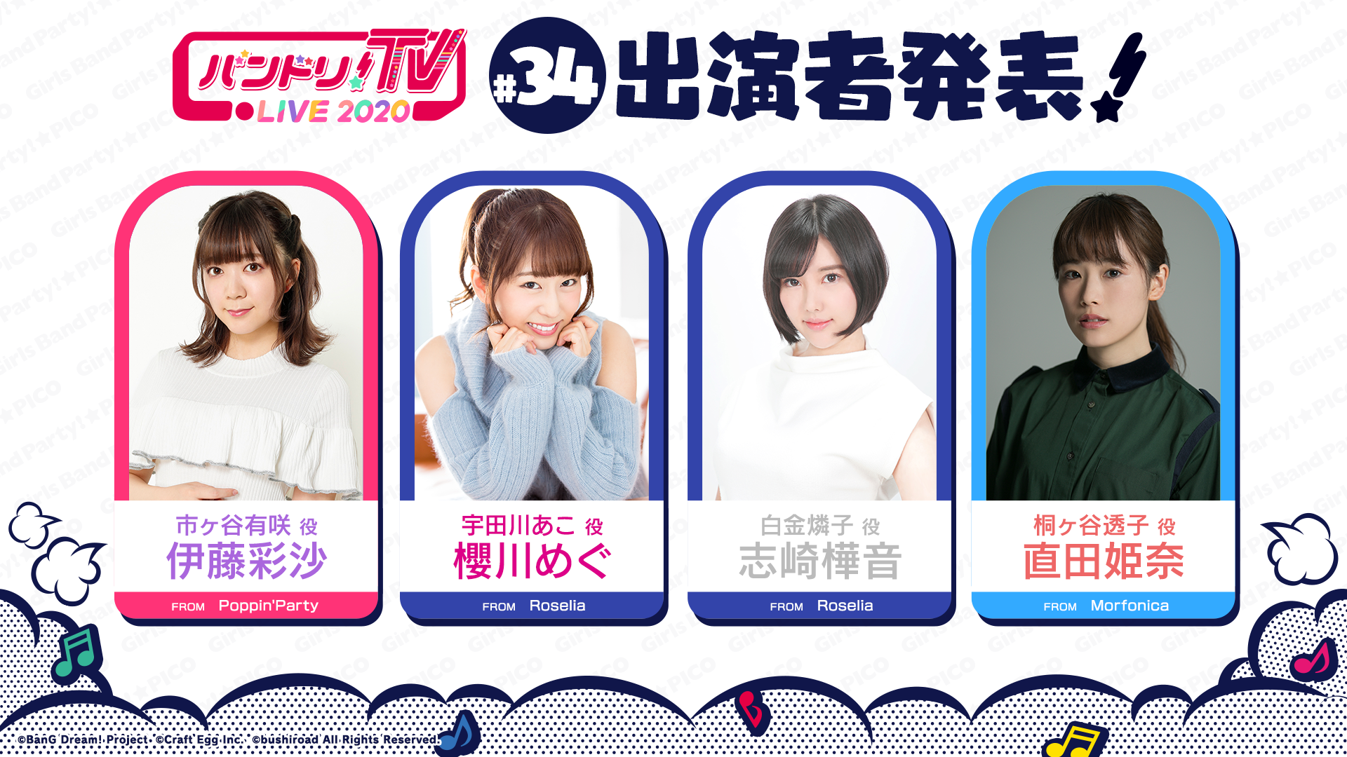 「バンドリ!TV LIVE 2020」は、ミニアニメ「BanG Dream! ガルパ☆ピコ ~大盛り~」の最速生配信やアニメの感想トークなど、