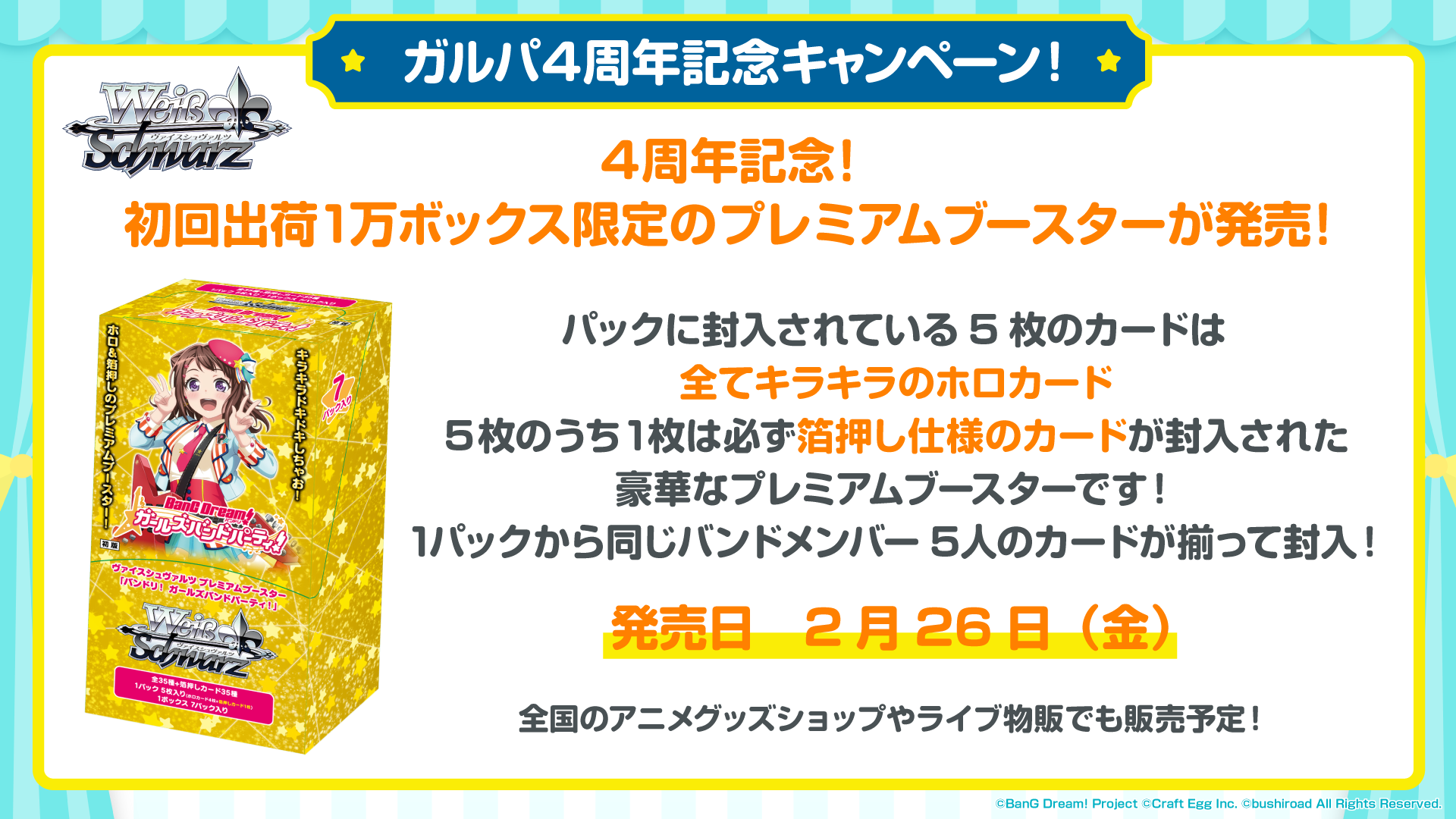 ヴァイスシュヴァルツよりガルパ4周年のプレミアブースターの発売が決定!