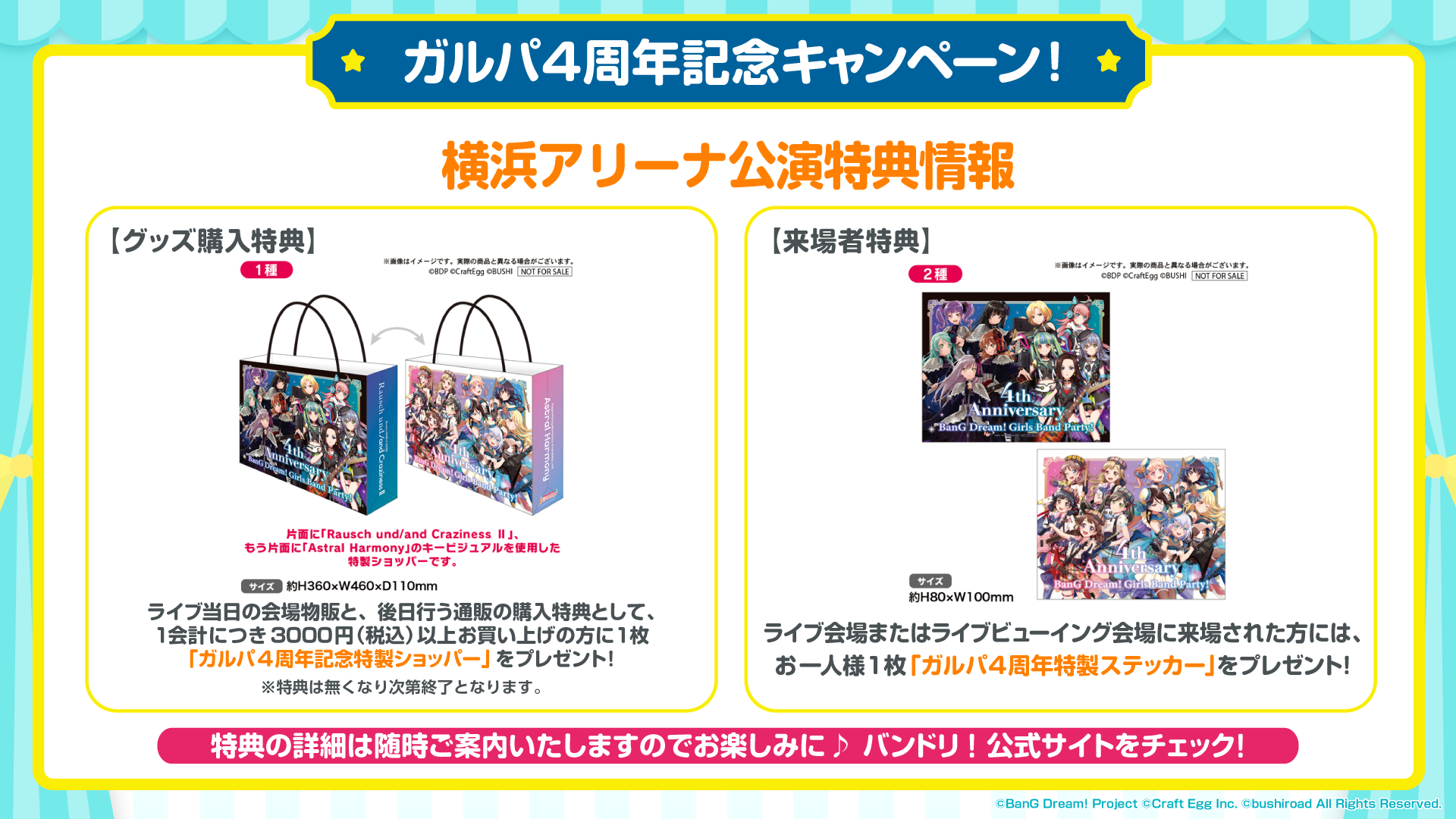 2月22日(月)・23日(火・祝)の横浜アリーナ公演にてガルパ4周年を記念した特典の配布が決定!