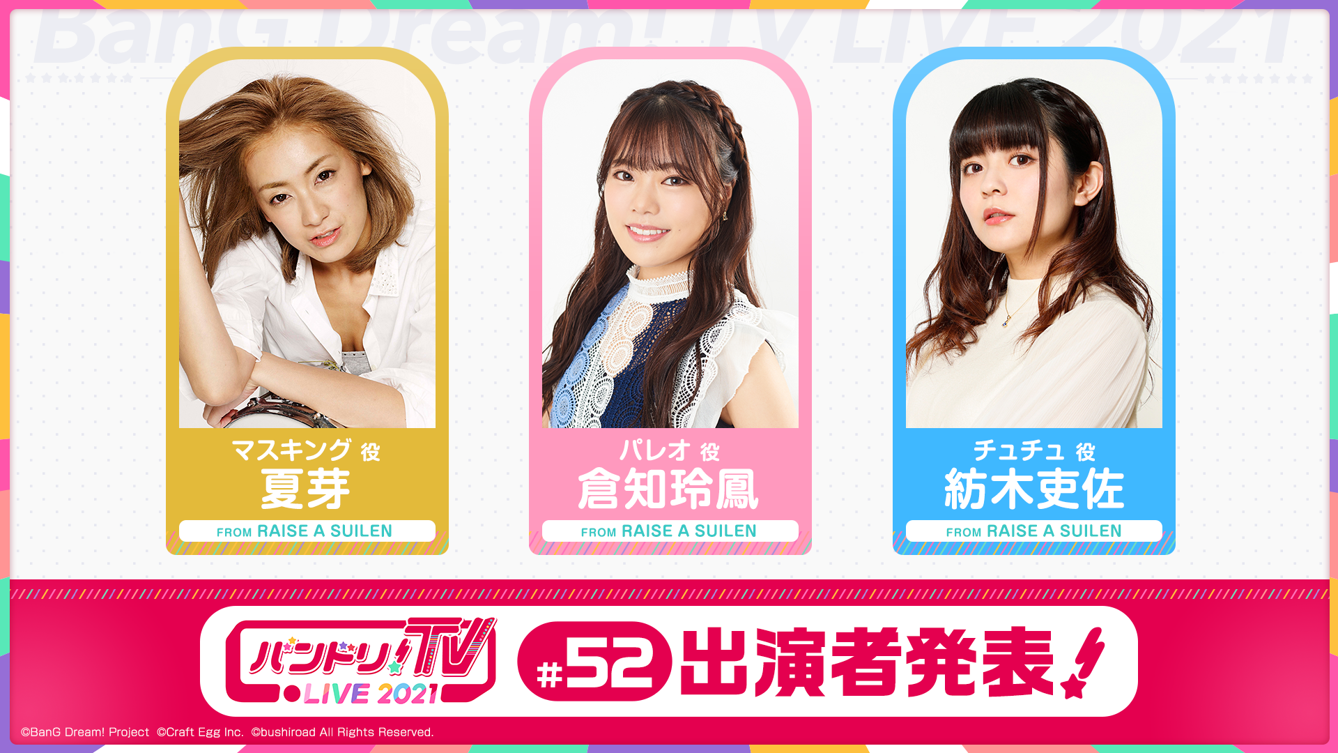 「バンドリ!TV LIVE 2021」はアニメやゲームに出演しているキャストにより、バンドリ!プロジェクトの最新情報などをお届けする生配信番組です!