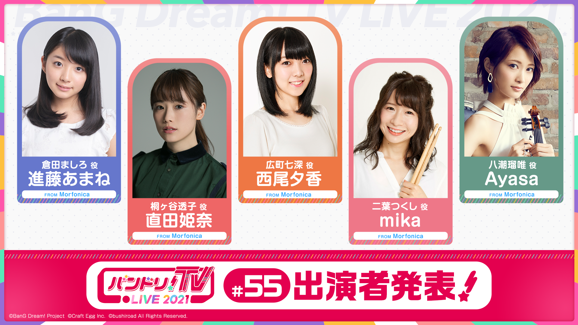 「バンドリ!TV LIVE 2021」はアニメやゲームに出演しているキャストにより、バンドリ!プロジェクトの最新情報などをお届けする生配信番組です!