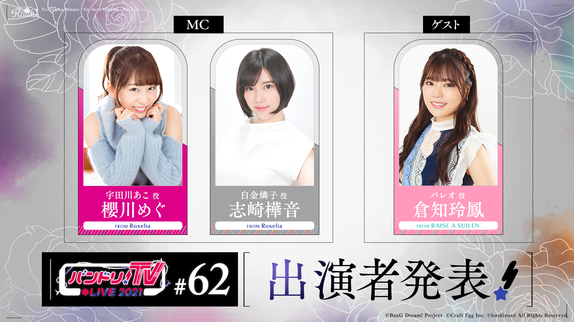 「バンドリ!TV LIVE 2021」はアニメやゲームに出演しているキャストにより、バンドリ!プロジェクトの最新情報などをお届けする生配信番組です!
