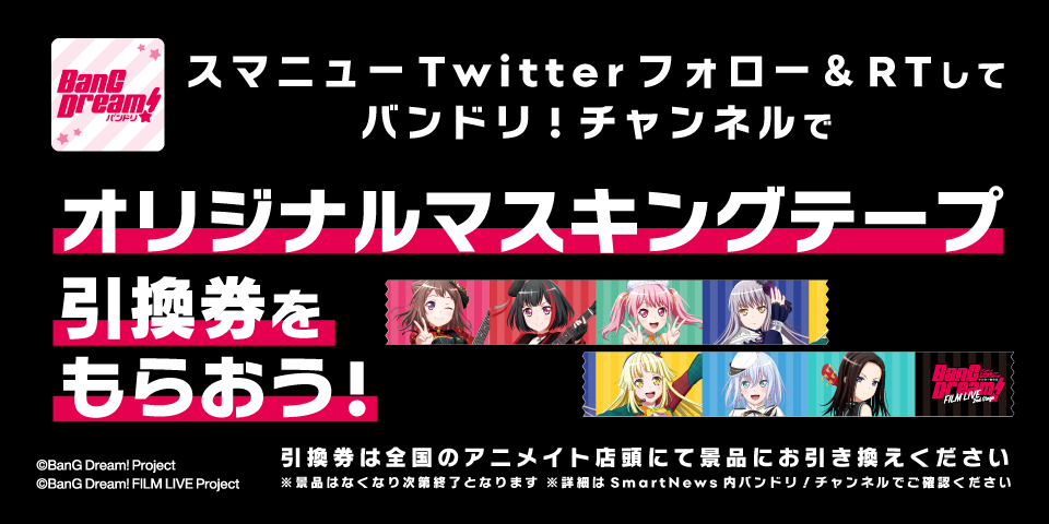 キャンペーンの詳細は、SmartNews内のバンドリ!チャンネルでご確認ください。