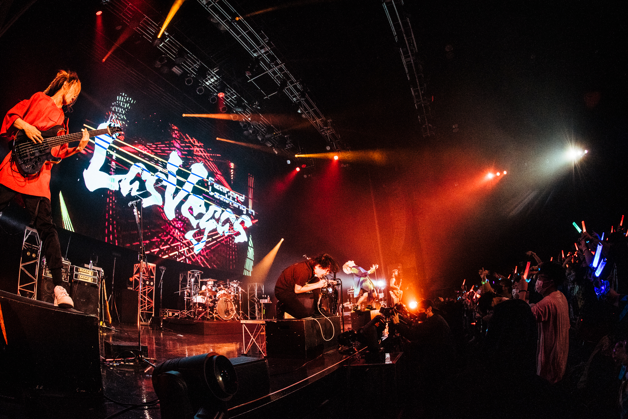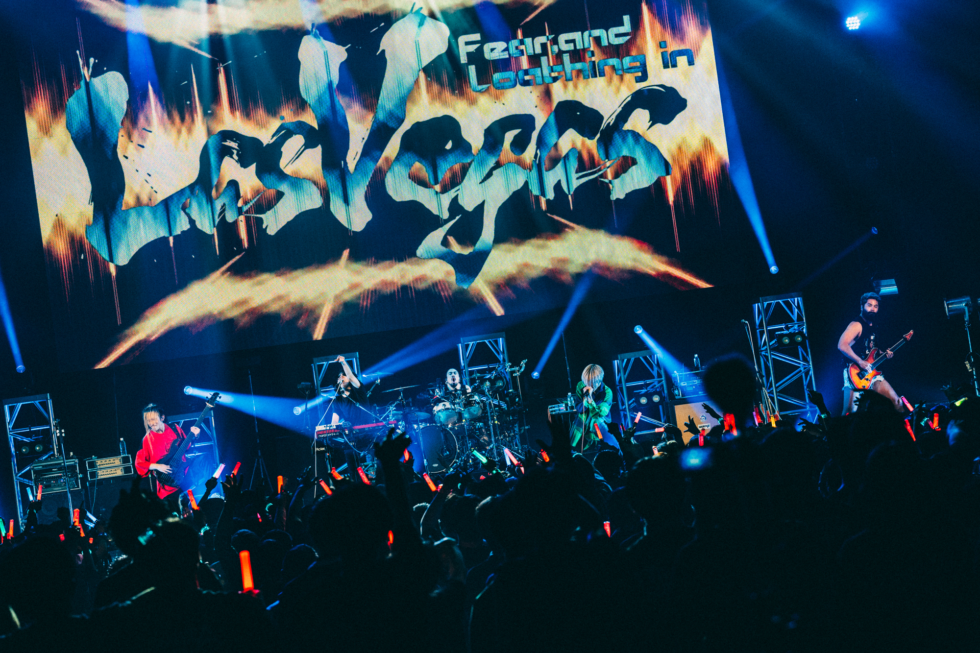 ゲストアクトとしての出演となるラスベガス(Fear, and Loathing in Las Vegas)は、1曲目の「Return to Zero」から、容赦のない音圧とテクニック、魂のパフォーマンスで集まったバンドリーマー(“バンドリ!“ファン)の心を掌握し、一瞬にしてその場をホームに変える。ヘドバンやハンドクラップ、ラスベガスならではのダンスで一体になるフロアは、さながらワンマンライブのようだ。中盤からはSo(Clean Vo)に求められ、ペンライトの光の海というラスベガスのライブでは珍しい光景を生んだ。終わってみれば、ゲストであることを忘れさせてしまう計13曲もの熱演だった。