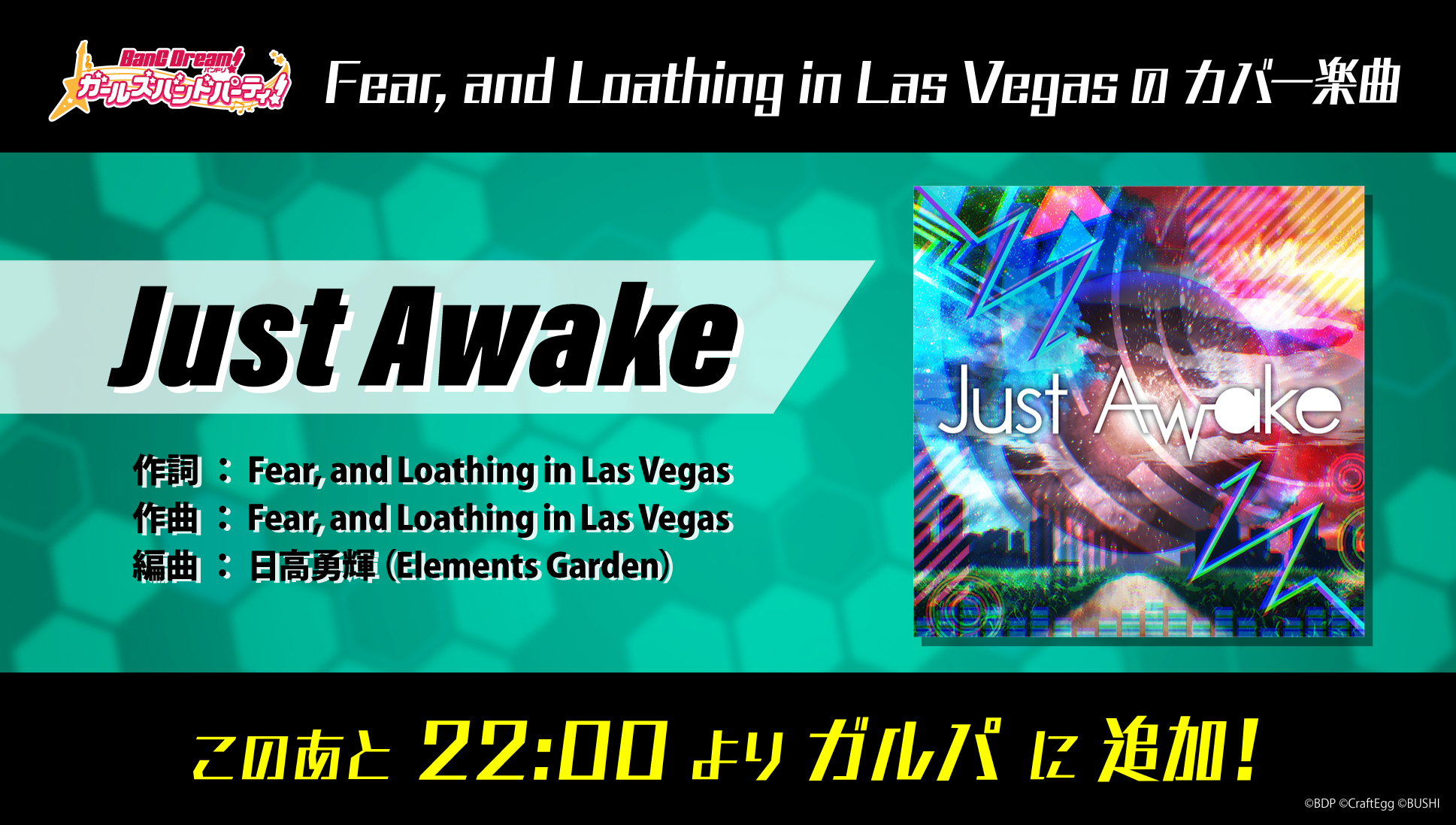 また、この日のライブで初披露された、RASによるラスベガスのカバー楽曲「Just Awake」が公演終了後22時よりガルパにて実装。
