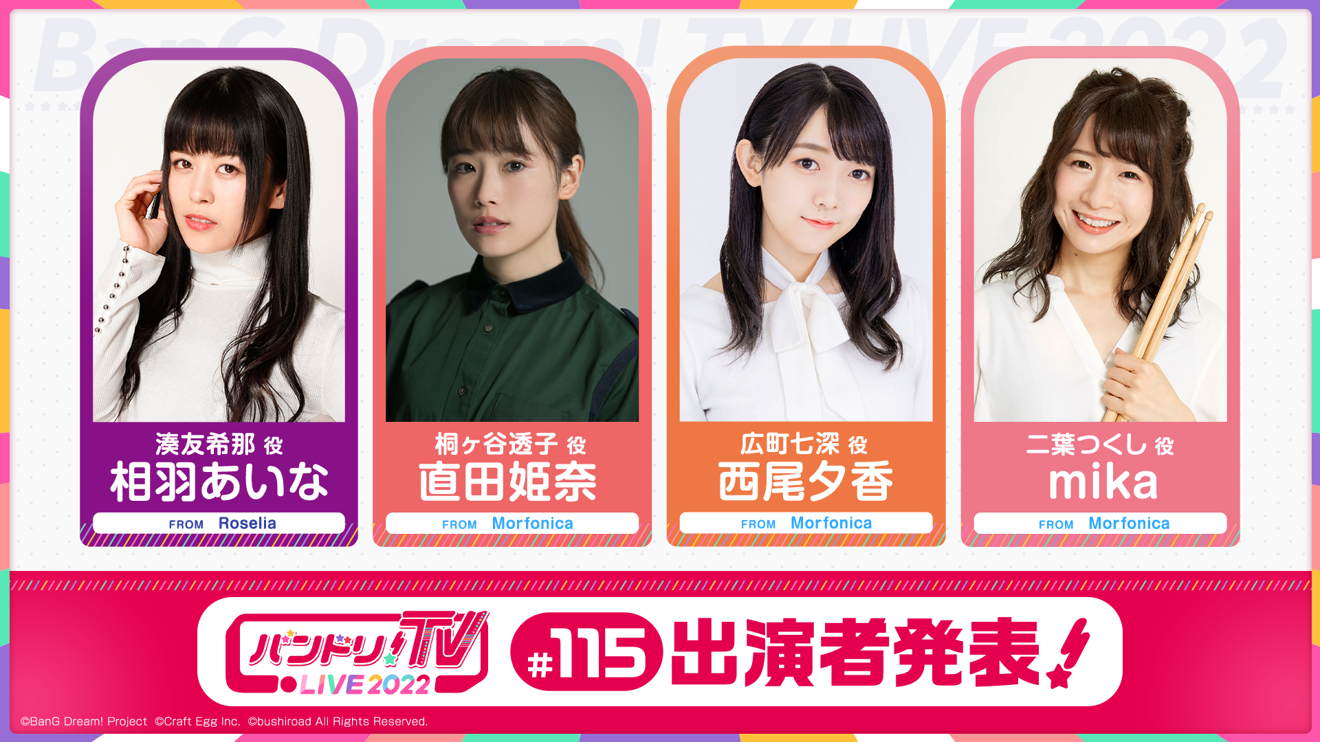 「バンドリ!TV LIVE 2022」はアニメやゲームに出演しているキャストにより、バンドリ!プロジェクトの最新情報などをお届けする生配信番組です!