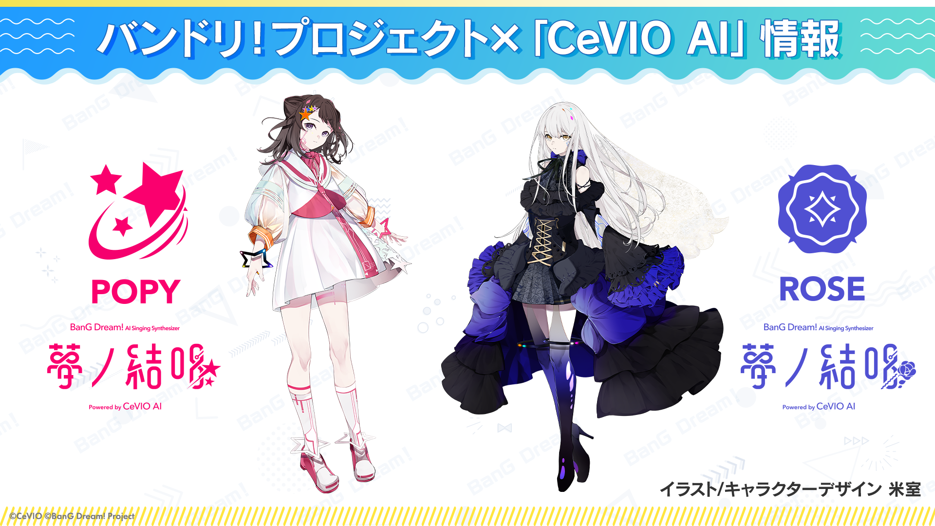 Poppin'Party Gt.&Vo.戸山香澄、そしてRoselia Vo.湊友希那をモデルとしたイメージキャラクター「POPY」「ROSE」のデザインも公開しました。