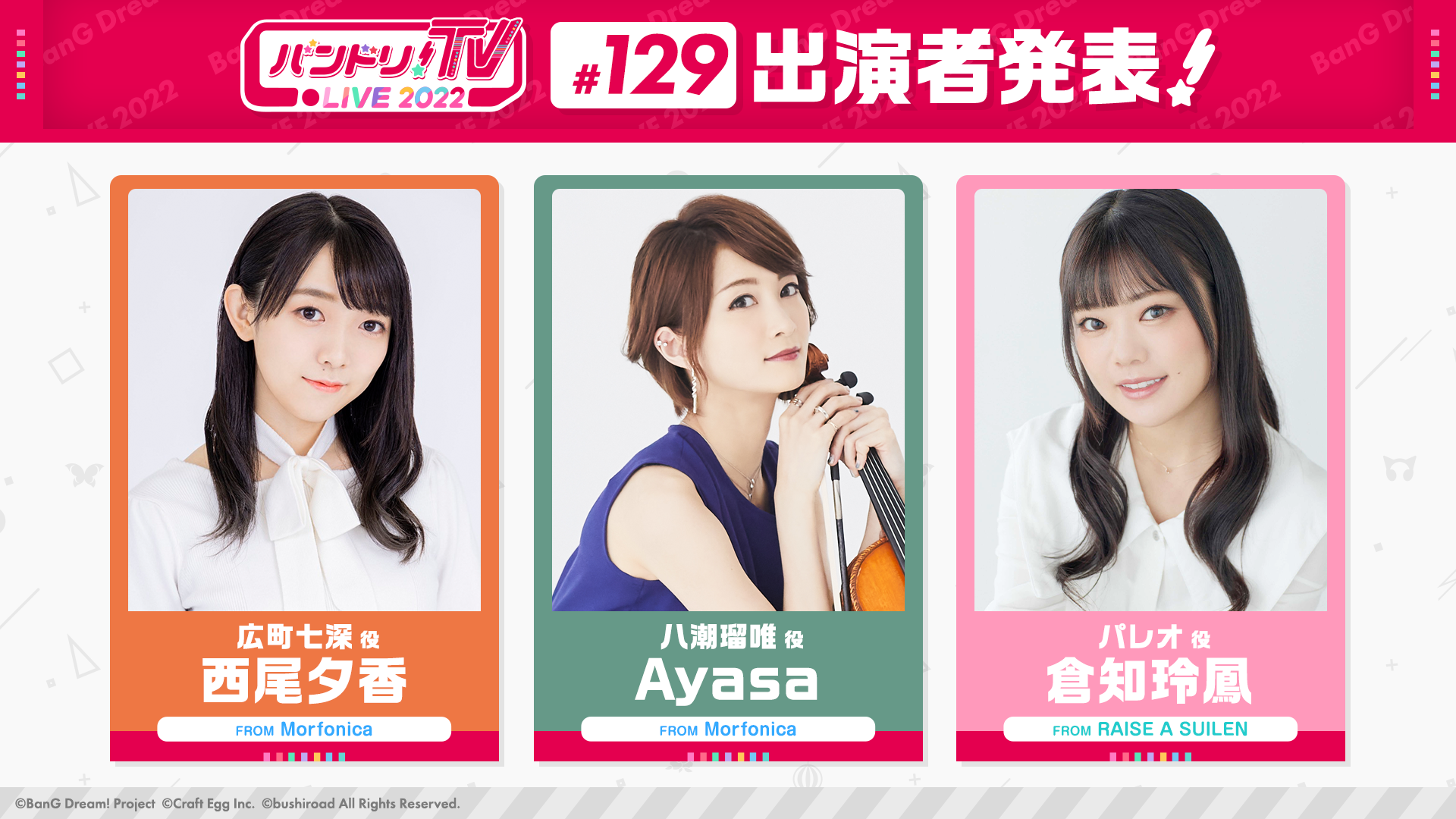 「バンドリ!TV LIVE 2022」はアニメやゲームに出演しているキャストにより、バンドリ!プロジェクトの最新情報などをお届けする生配信番組です!