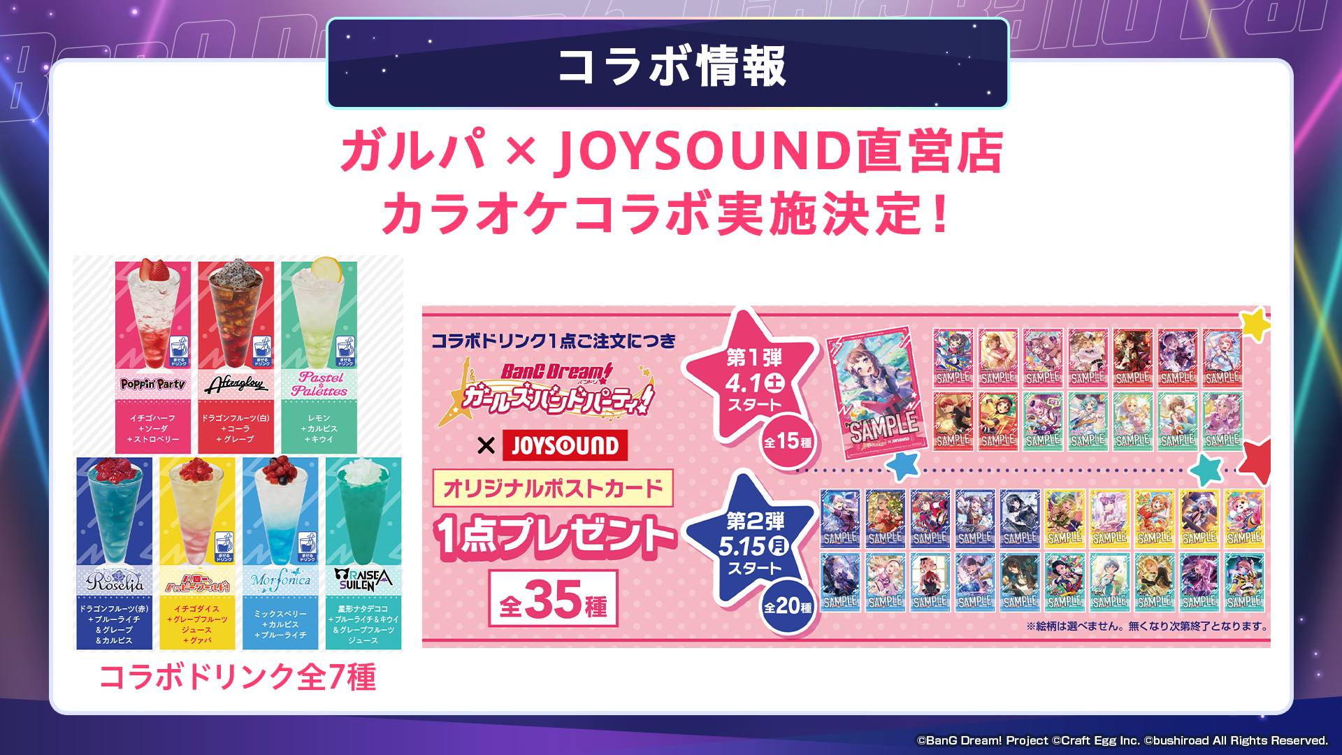 ■JOYSOUND直営店・全国71店舗で、オリジナルポストカード(全35種)が貰えるコラボドリンク(全7種)を販売!