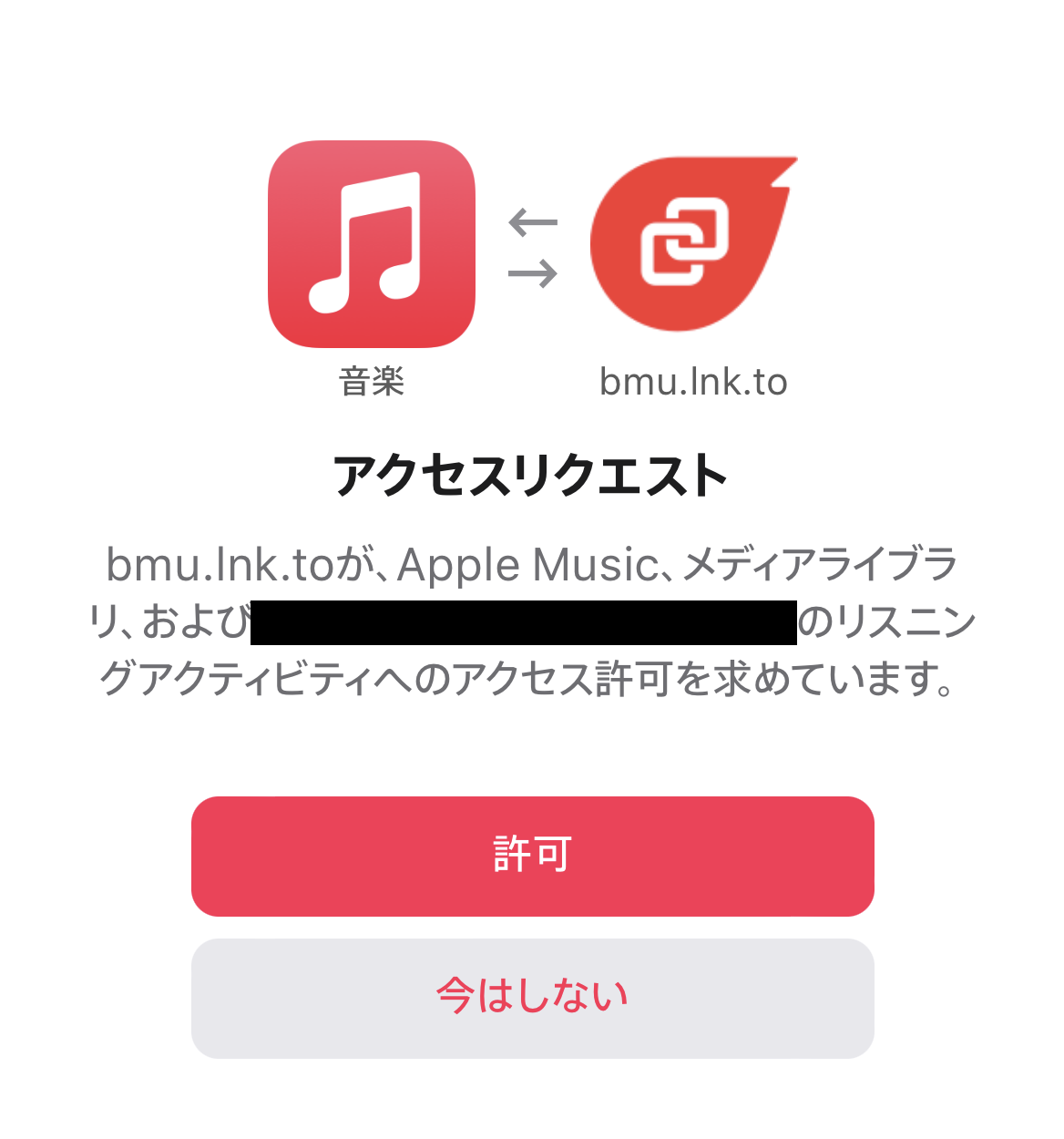 ②Apple Musicのアプリ認証へのアクセスリクエストが出てくるので「許可」をタップする。