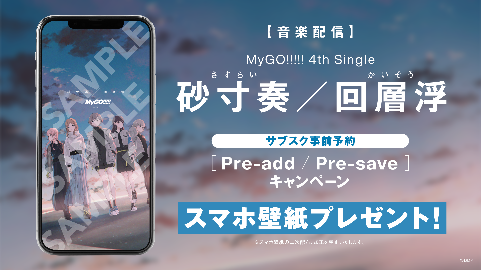 2024年3月20日(水)に配信開始のMyGO!!!!! 4th Single「砂寸奏/回層浮」を、Apple MusicもしくはSpotifyにて、