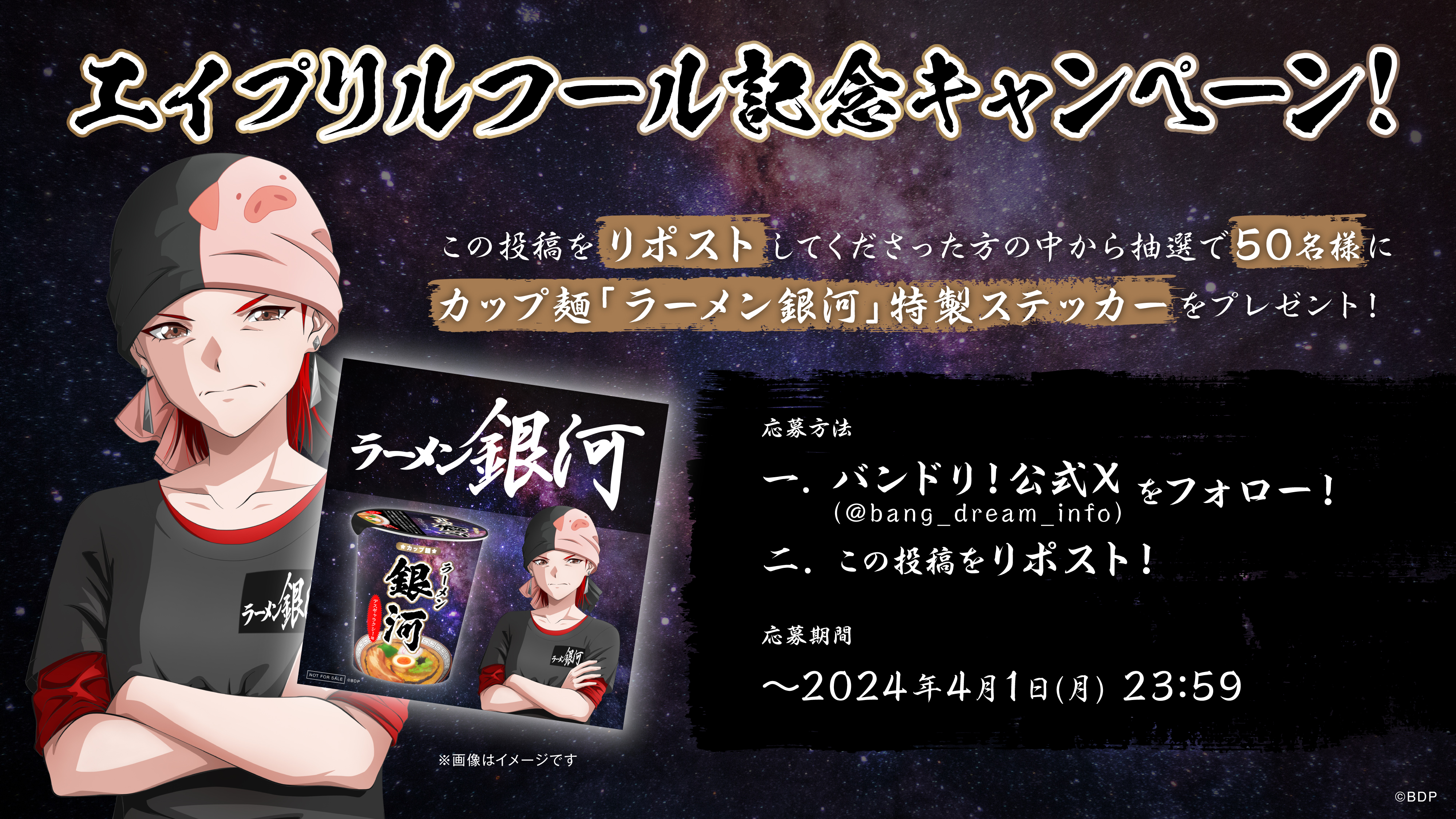 抽選で50名様にカップ麺「ラーメン銀河」特製ステッカーをプレゼント!