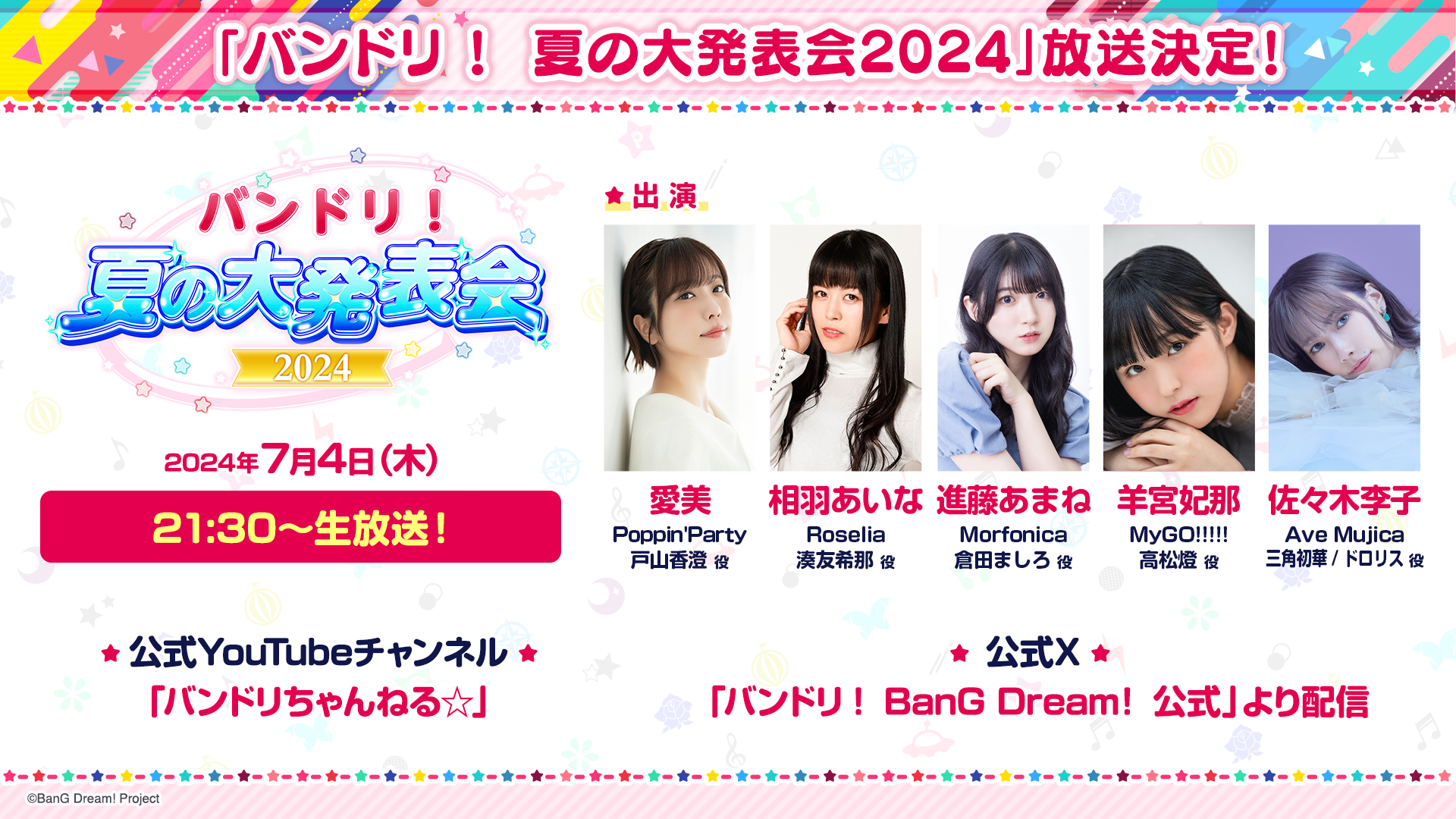 生放送番組「バンドリ! 夏の大発表会2024」の放送が決定しました!