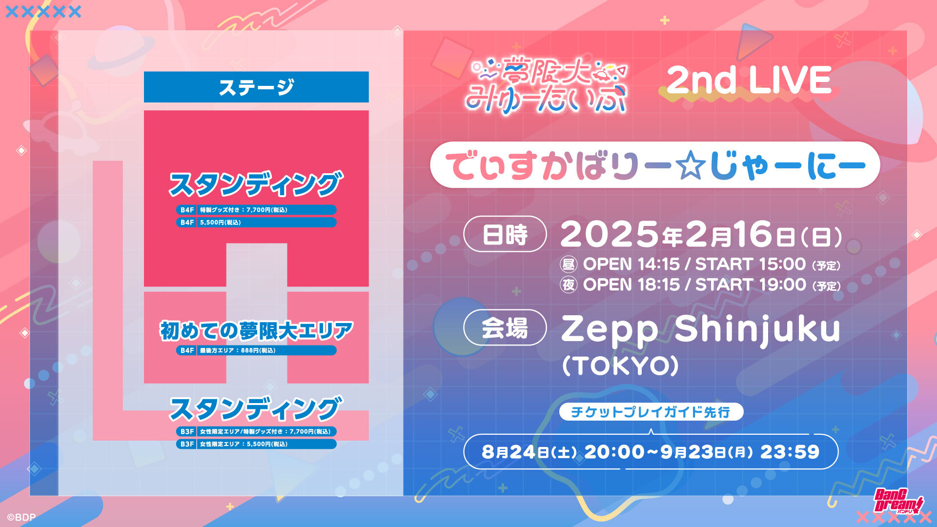 2025年2月16日(日)、Zepp Shinjuku (TOKYO)にて、夢限大みゅーたいぷ 2nd LIVEの開催(昼夜2回公演)が決定しました。チケットプレイガイド先行が、本日20時よりスタートしました。
