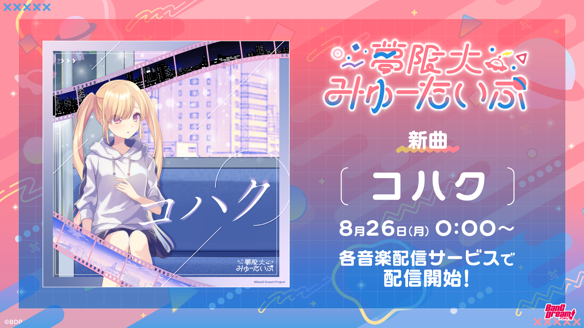 本日の公演で初披露した新曲「コハク」のMVが8月25日(日) 23:00より、夢限大みゅーたいぷYouTube公式チャンネルにてプレミア公開されることが決定しました。また。各音楽配信サービスでの配信が8月26日(月) 0時よりスタートします。本楽曲は、夢限大みゅーたいぷVo. 仲町あられが作詞に初挑戦した楽曲です。