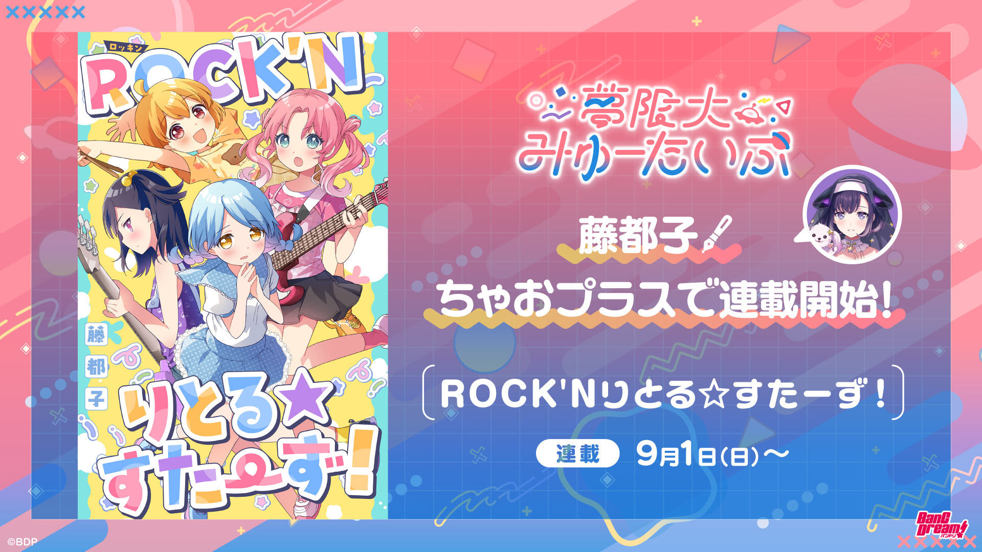 これまでも夢限大みゅーたいぷのオリジナル楽曲のまんがやイラストを手掛けてきたKey.藤都子が描く漫画「ROCK'Nりとる☆すたーず!」が小学館のデジタルサービス「ちゃおプラス」に9月1日(日)より連載されます。