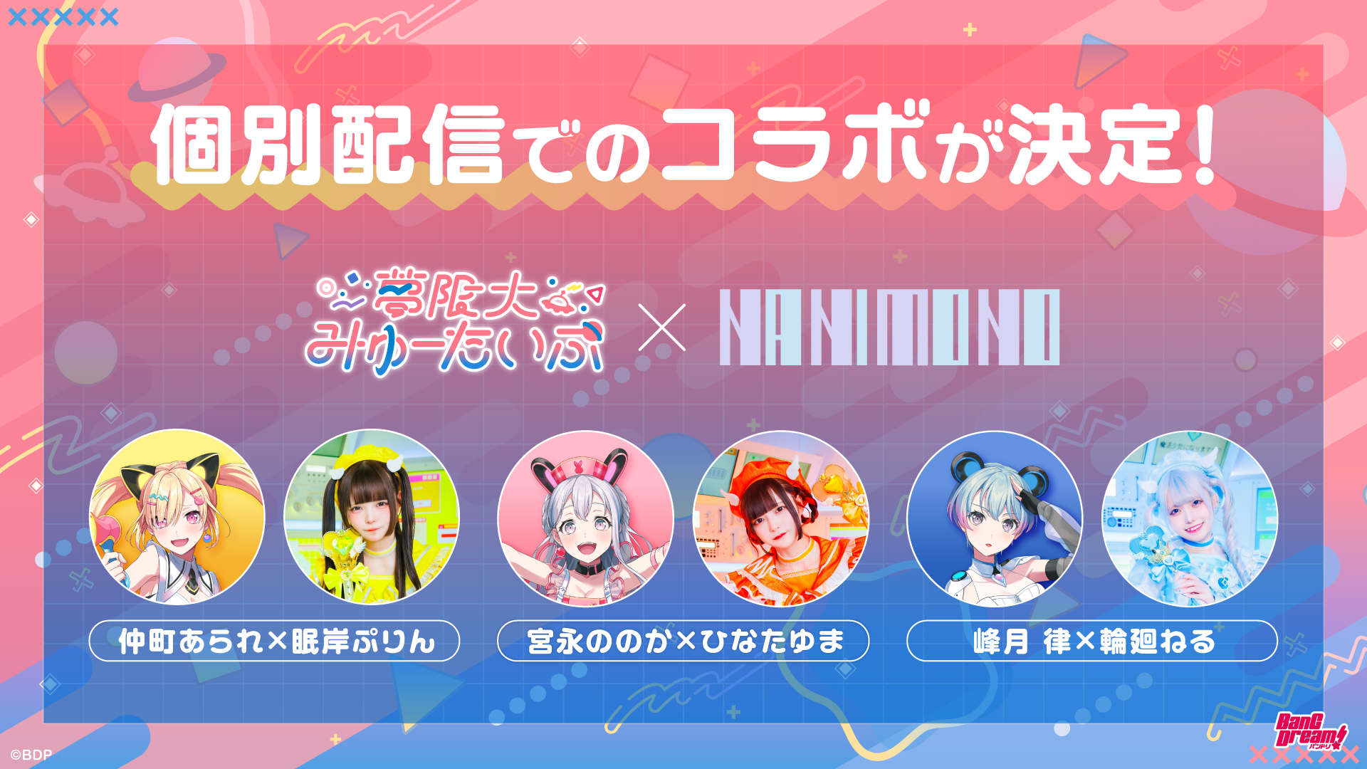 夢限大みゅーたいぷとNANIMONOの個別配信でのコラボが決定しました。詳細は後日公式Xをご覧ください。