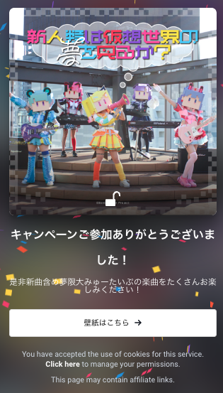 完了画面の「壁紙はこちら→」をクリック