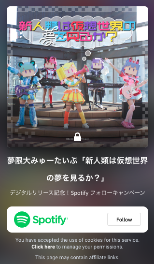 Spotify フォローキャンペーンは、既にSpotifyで夢限大みゅーたいぷのアーティストページをフォローしていただいている方もご参加いただけます!
