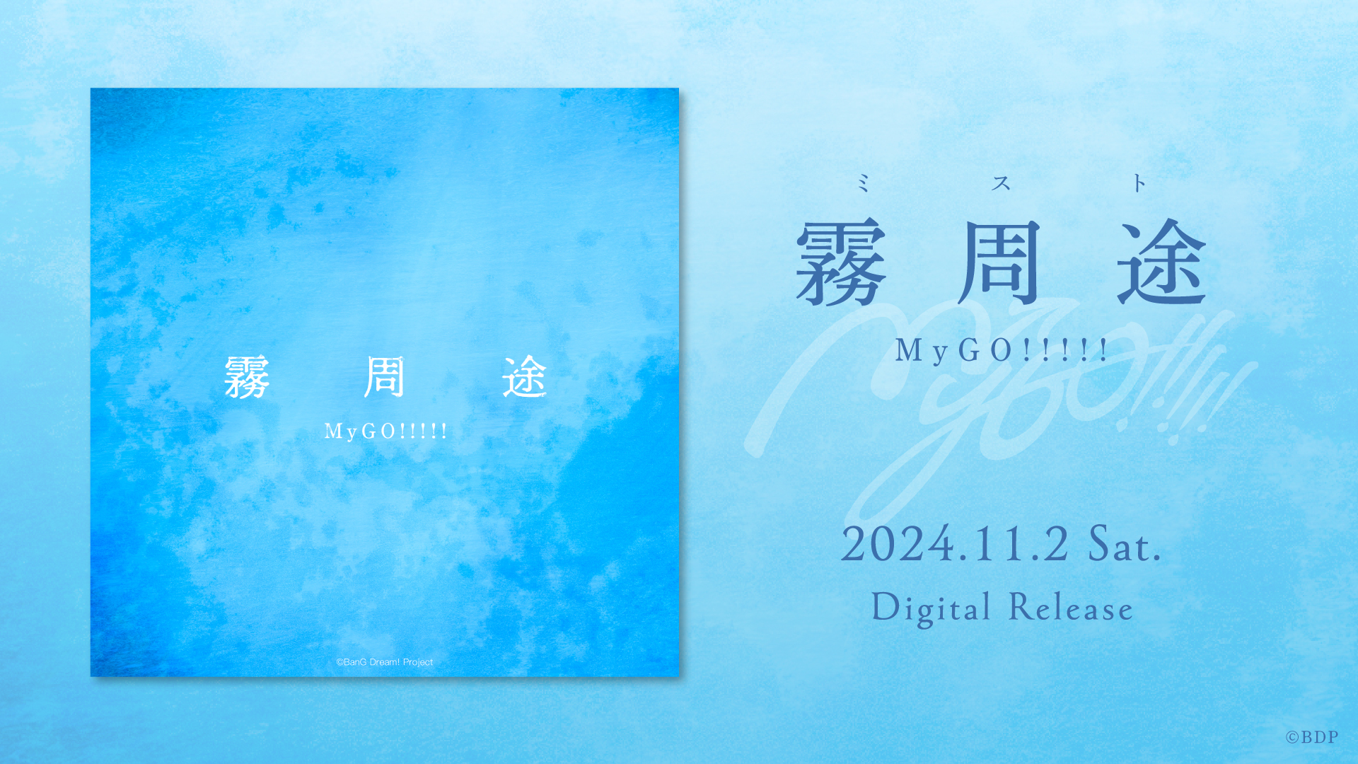 各音楽配信サービスにて、MyGO!!!!!新曲「霧周途」の配信が11月2日(土) 0時よりスタートします。