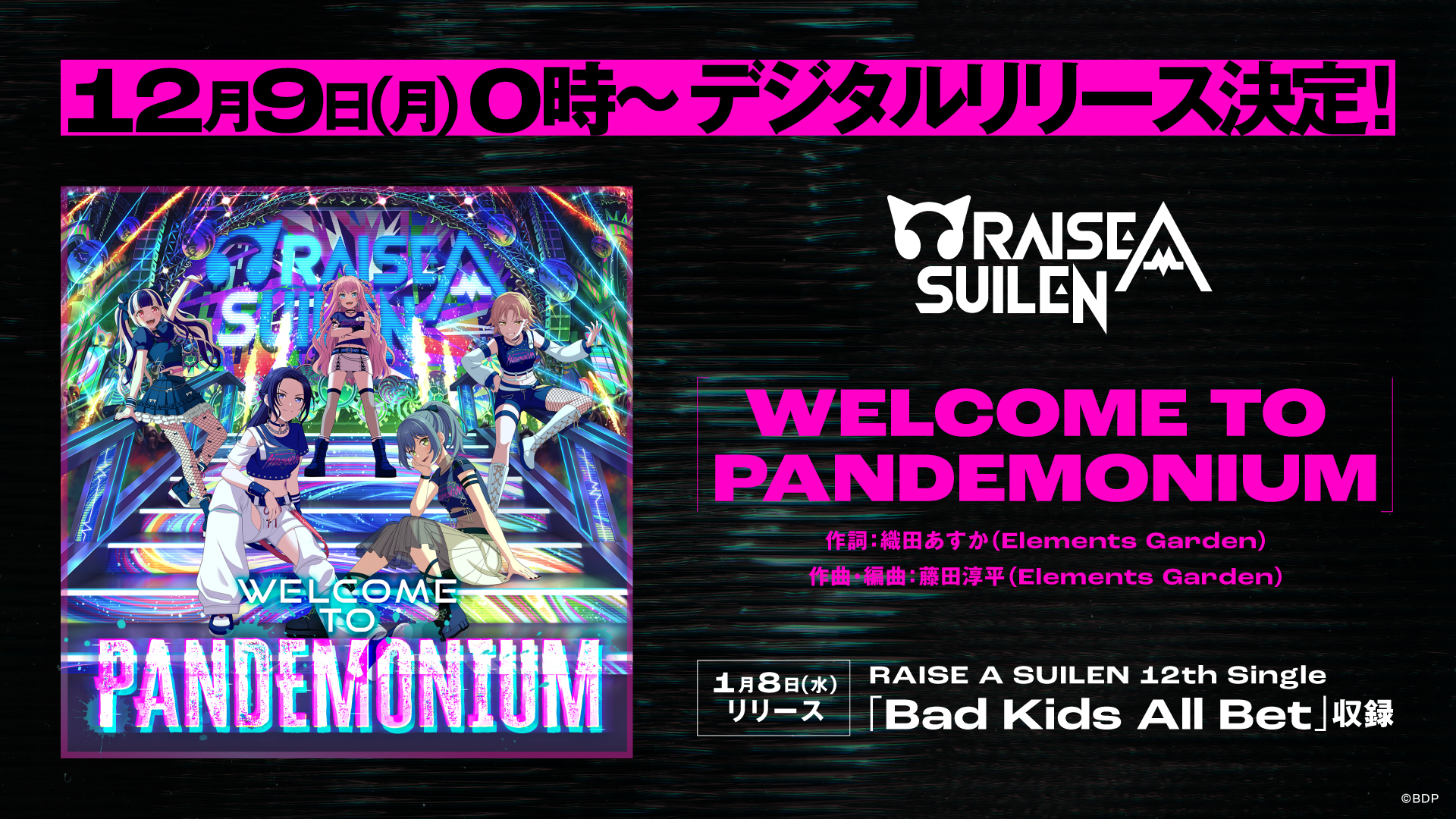各音楽配信サービスにてRAISE A SUILEN「WELCOME TO PANDEMONIUM」が12月9日(月)にデジタルリリース!