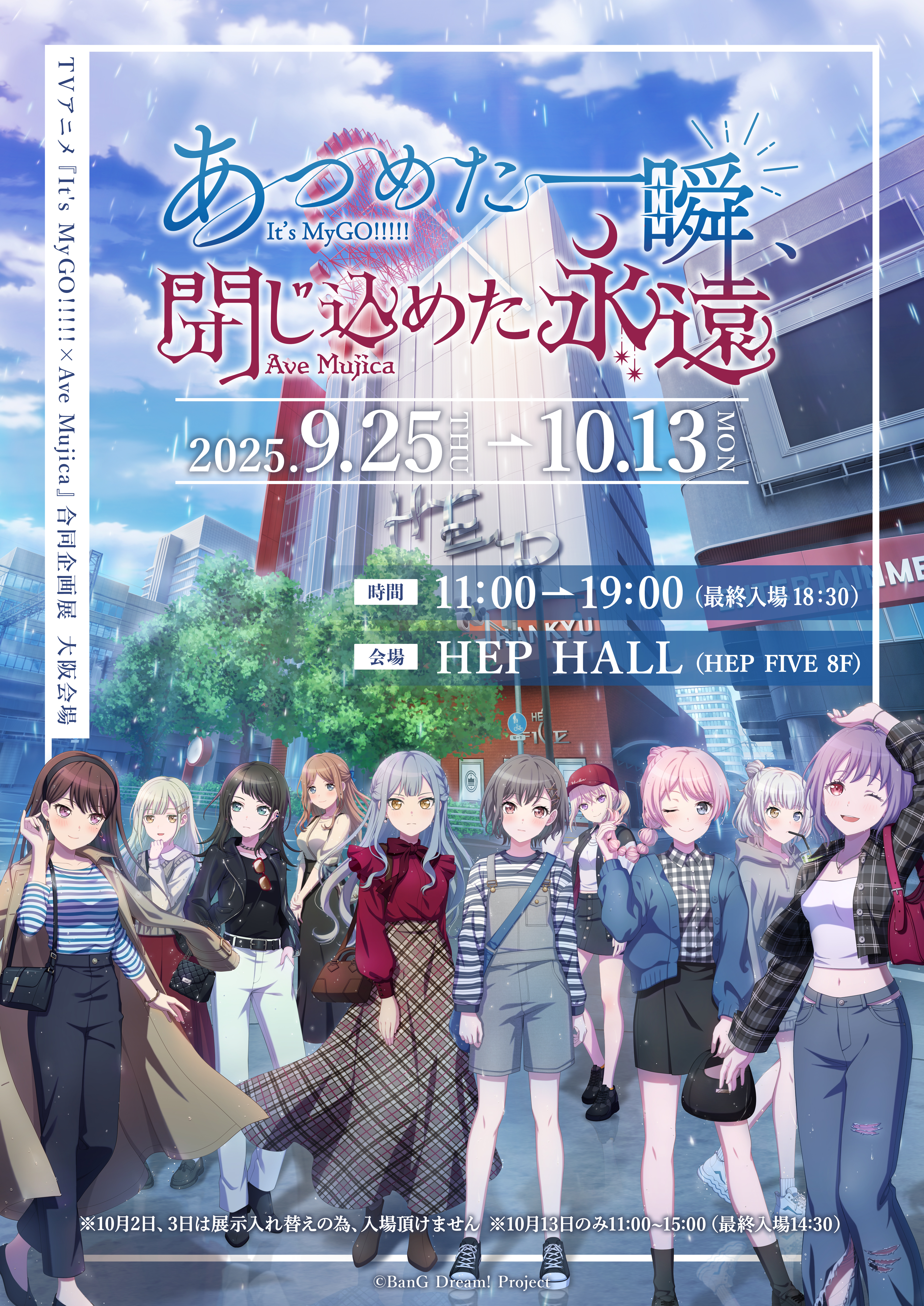 TVアニメ『It's MyGO!!!!! × Ave Mujica』合同企画展 『あつめた一瞬、閉じ込めた永遠』の巡回展が大阪・梅田のHEP HALLにて開催決定しました!