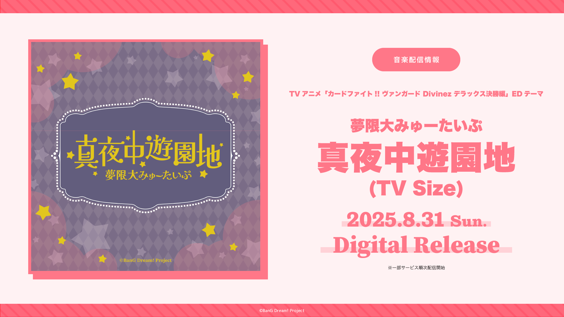 2025年7月より放送のTVアニメ「カードファイト!! ヴァンガード Divinez デラックス決勝編」のEDテーマをバンドリ!の10バンドが週ごとに担当!
