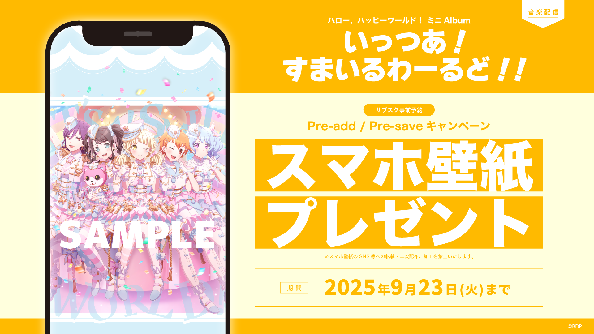 ハロー、ハッピーワールド! ミニAlbum「いっつあ!すまいるわーるど!!」のデジタルリリースを記念して、Apple Music・Spotify事前予約(Pre-add / Pre-save)キャンペーンを実施いたします。