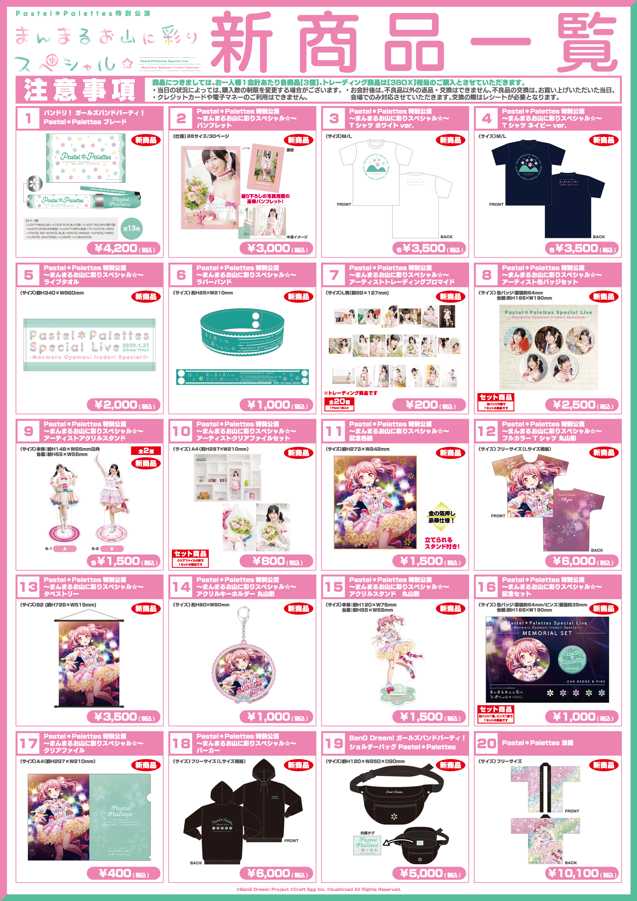 ※「Pastel*Palettes特別公演 〜まんまるお山に彩りスペシャル☆〜」で販売を予定している商品は今後の各種イベントでの販売を行う予定があります。