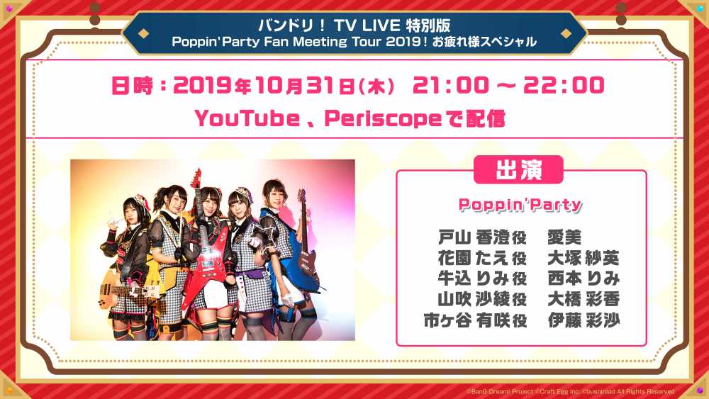 「バンドリ!TV LIVE 特別版 Poppin'Party Fan Meeting Tour 2019! お疲れ様スペシャル」の放送が決定!!