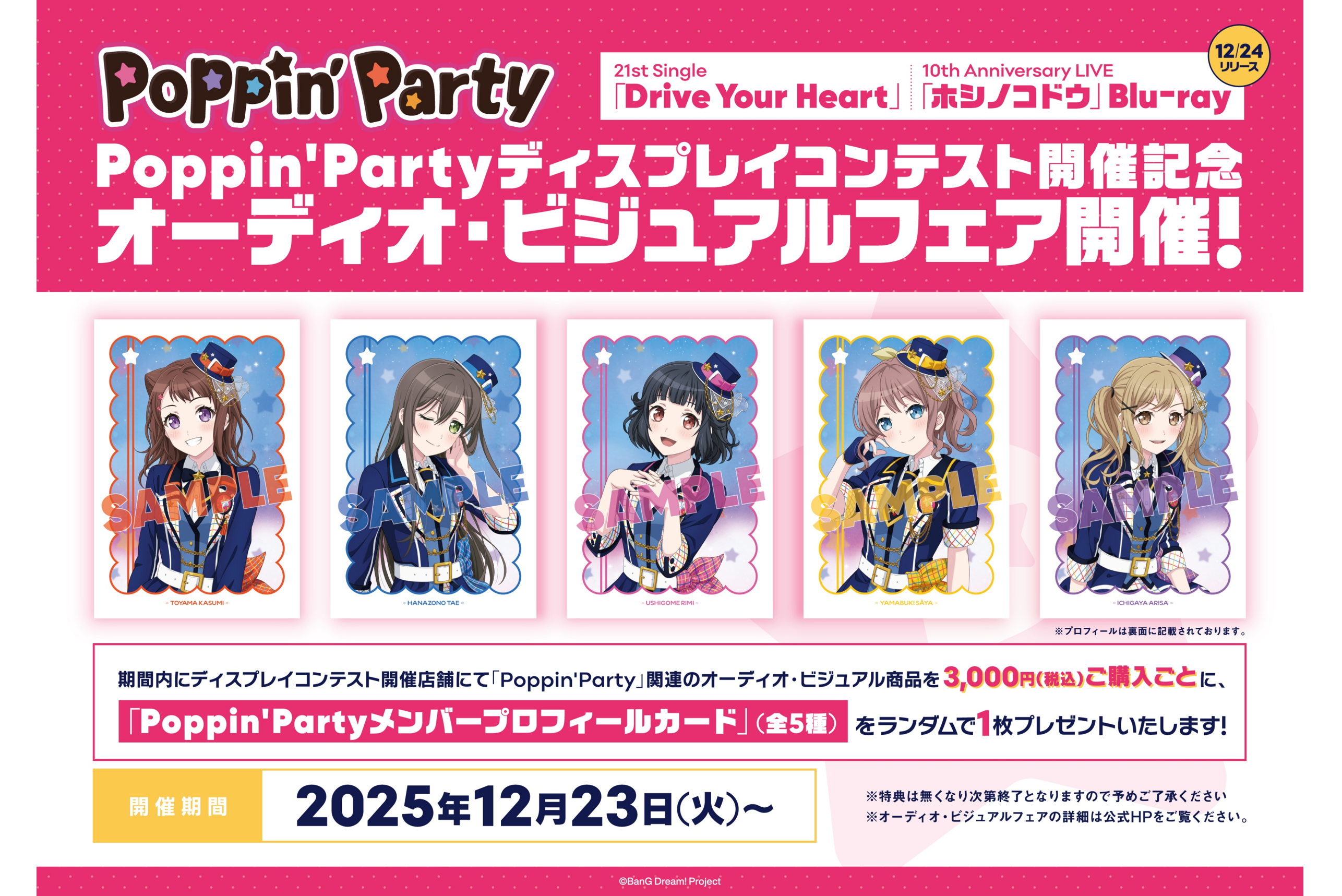 Poppin'Party 21st Single「Drive Your Heart」/10th Anniversary LIVE「ホシノコドウ」Blu-ray 同時リリース記念 ディスプレイ・コンテスト&オーディオ・ビジュアルフェア開催決定!