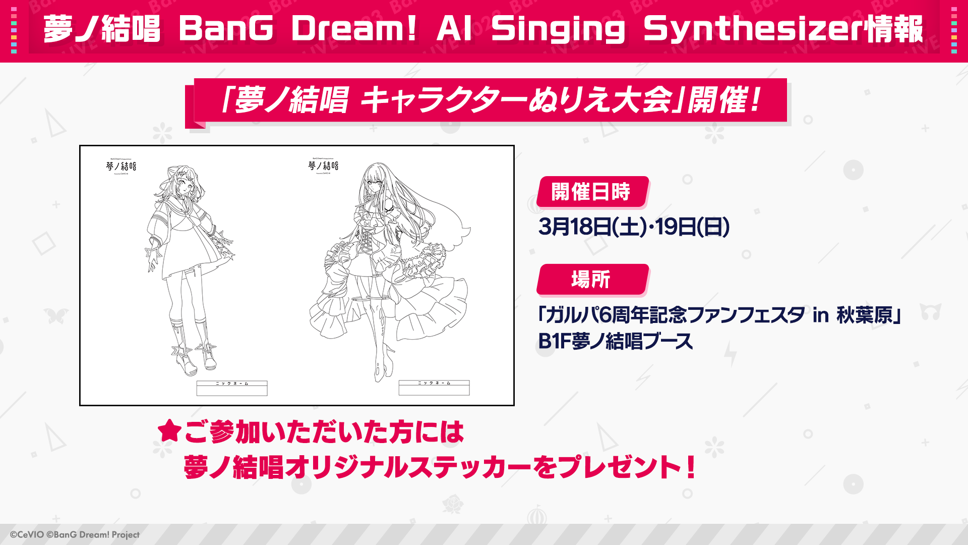 ガルパ6周年記念ファンフェスタ in 秋葉原の夢ノ結唱ブースにて夢ノ結唱POPY・ROSEのぬりえ大会を開催します!